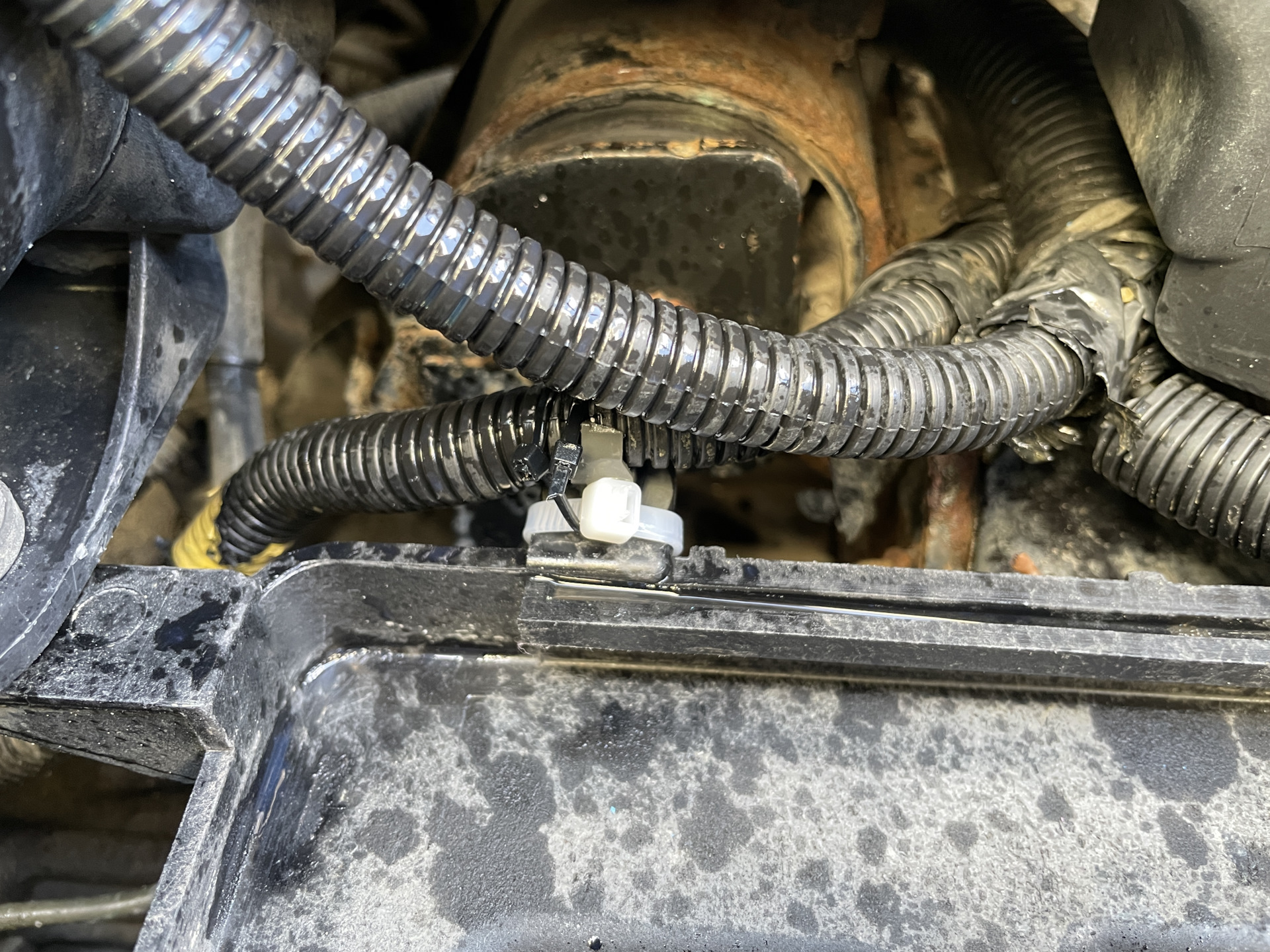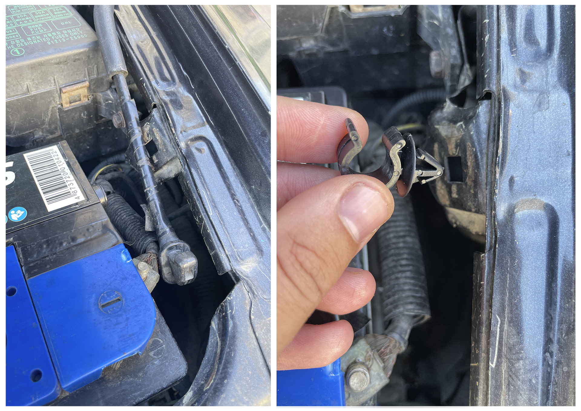 Ниже тоже был косяк, боковая защита между колесом и областью под АКБ, болтается. Пластмасска, прям как с левой стороны, которую в первой части этого рассказа затирал ремень ГРМ. Эта штука может создавать шум, поэтому как временное решение, точно так же как и с другой стороны, закрепил стяжками, пролесть туда и попасть в дырку было квестом на час, теперь все руки в синяках, но душа спокойна: