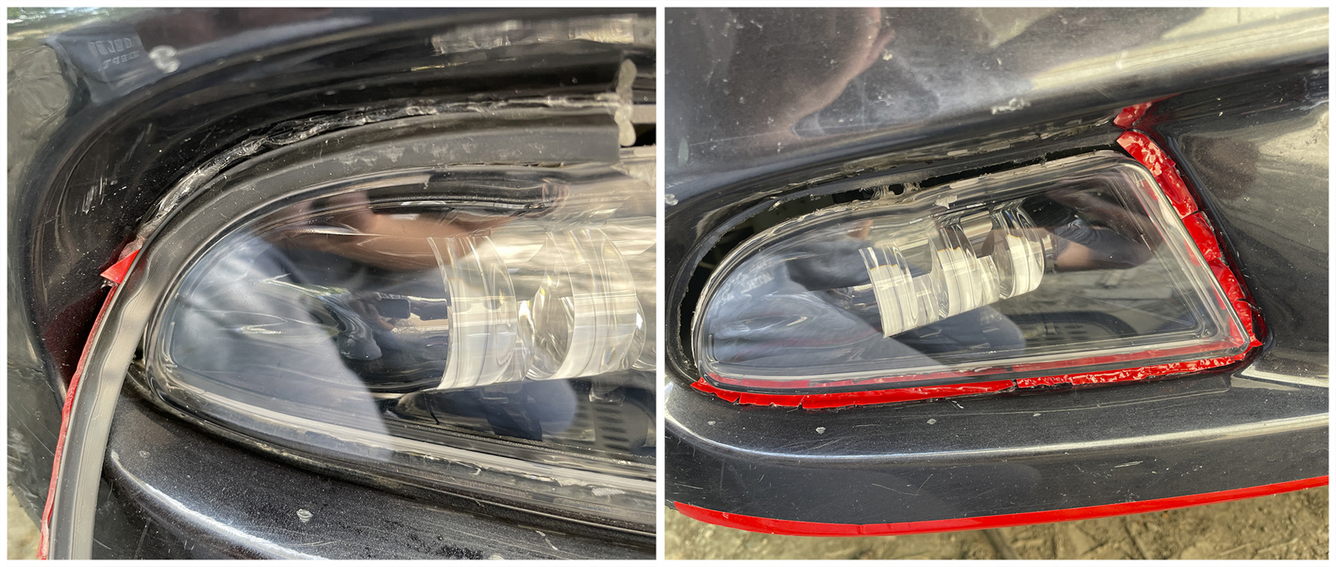 Ошибкой номер четыре было, не использовать резиновый уплотнитель во всю длину, а клеить кусочками во избежании стыков, на второй туманке я это понял, крепление мне показалось недостаточно надёжным и я залил остатки герметика после прошлого ремонта в некоторые полости, поприжимал. Клейкая лента так же набирает жёсткость через сутки, она даже неплохо клеилась к пальцам и пластмассе, но не к резинке. Результат: