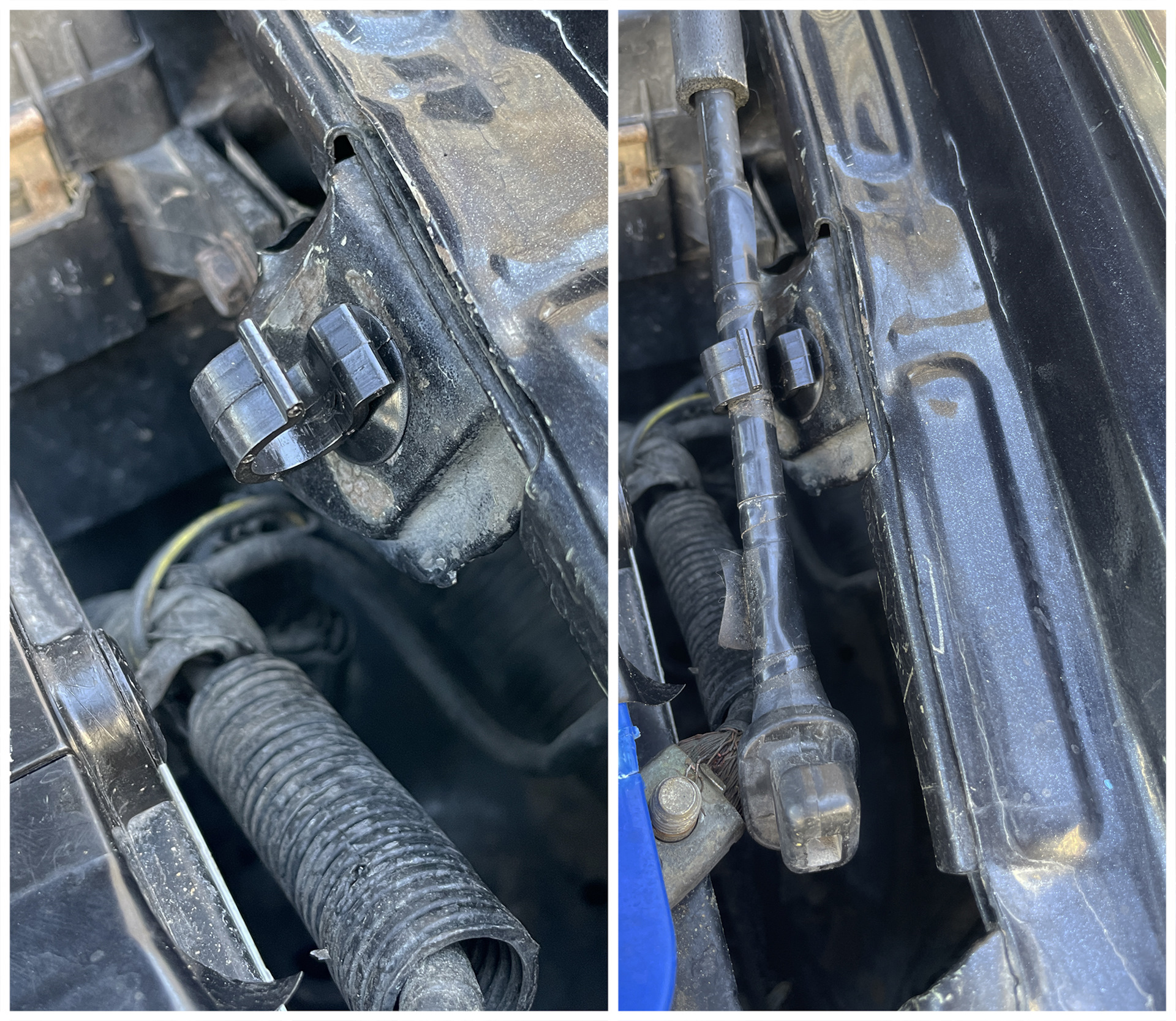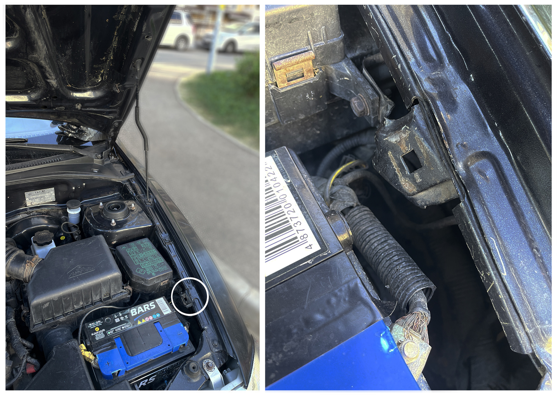 Всё просто, саморезы в крыльях были обычные (тоже дело рук нашего героя). Мне осталось лишь обмотать всё молярным скотчем и покрасить эти шурупики в чёрный, покраска той же технологии что и штамповки, не снимая их с авто. С момента покупки у меня отсутствовало много болтиков (в т.ч. сорваных бошек) и элементов, одним из которых был держатель капота: