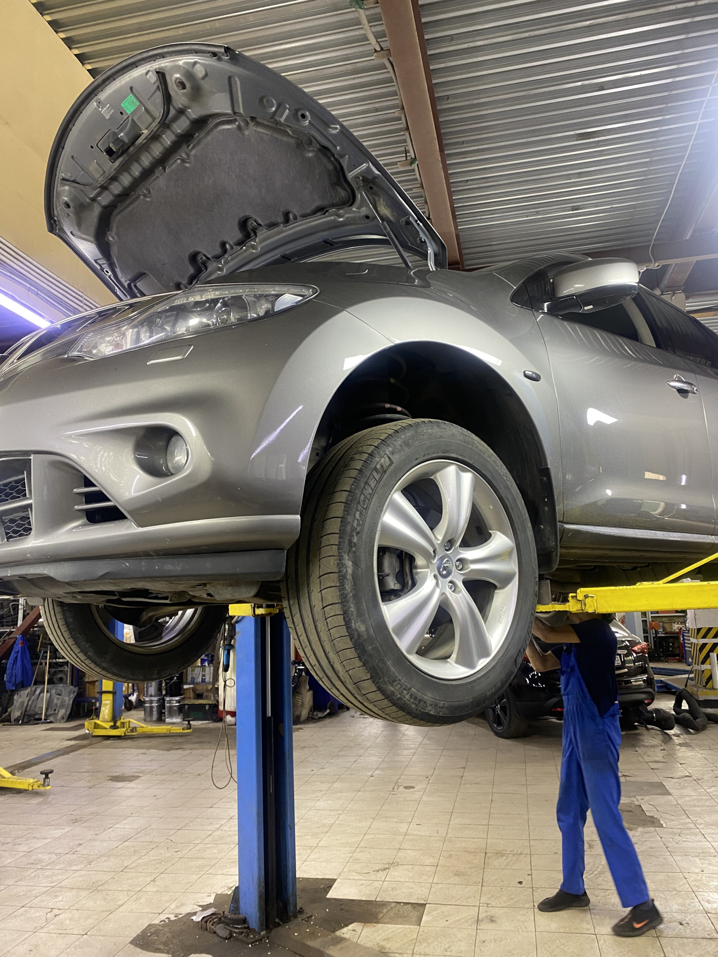 Теперь кратко с чем я поехал и сколько это все обошлось . Ехал по трассе с работы домой, и вдруг в один момент перестает дуть кондиционер . Вышел походил, и понимаю что нет щелчка подключения электромуфты. Думаю хоть бы менять не в сборе 🤦🏻♂️ вторая же причина была это старая проблема с вибрацией не понятной . При разгоне и сбрасывание, такое ощущение разбалансированности. Ну и третья это посторонние шумы в подвеске . Записал в сервис и приезжаю в назначенное время с утра. Заехал и сразу начали делать полную диагностику. Сразу скажу что прям уровень, умения и знание машины у мастеров прям на высшем уровне . То что мне искали месяцами было найдено за пару минут . И так … Начали с вибрации, соответсвенно это оказался карданный вал. Его мне разболансировали в прошлом сервисе при замене подвесного подшипника . Его сняли и отправили в сервис где ребята занимаются именно этими видами работ.
