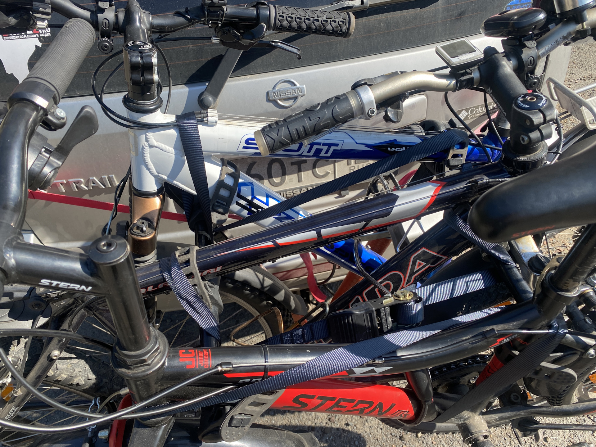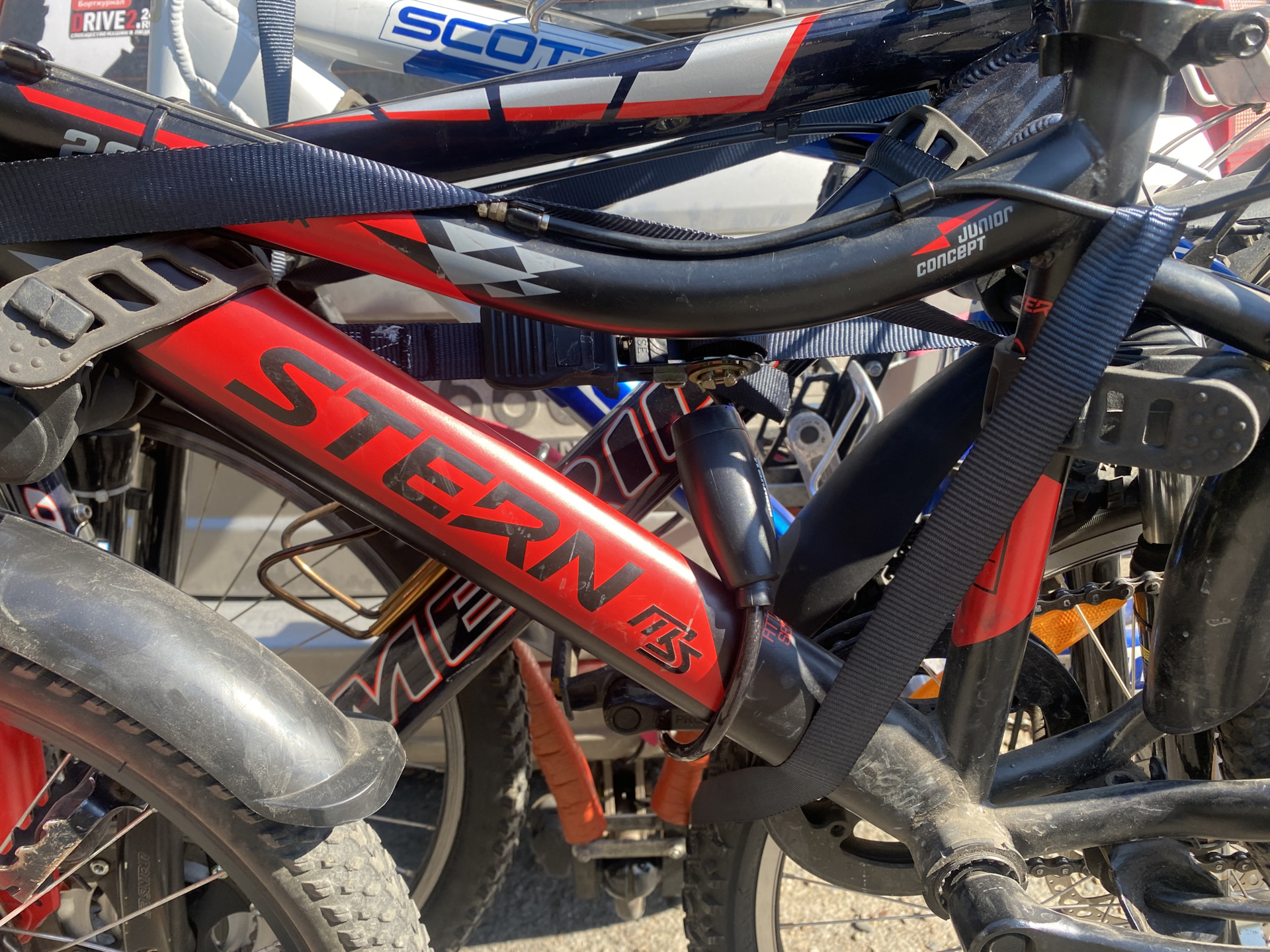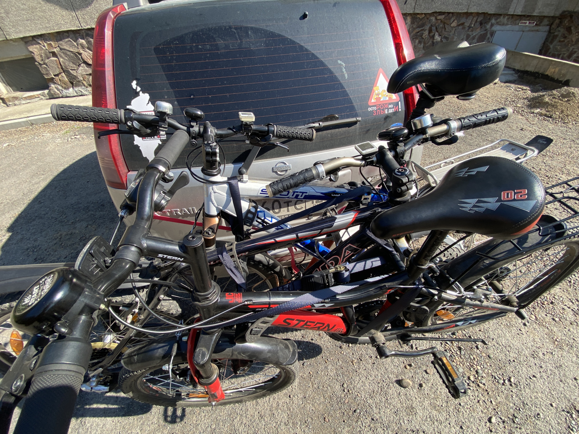 Несмотря на то, что рассчитан багажник на три велосипеда, лучший вариант — два. Так ничего не болтается. Возможно, дело просто в том, что последним висел детский велосипед, но вот незадача — в начало или середину он не помещается.