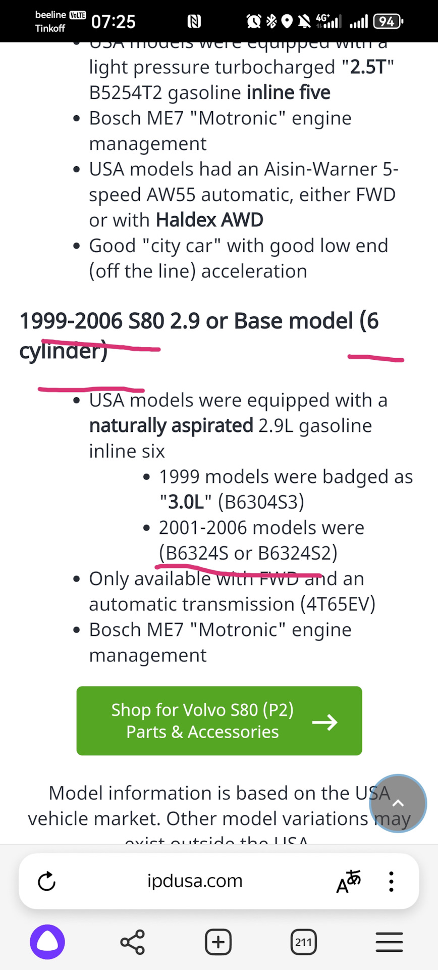 Были S80 на Р2 с двигателем 3.2, в каталоге Вольво он есть