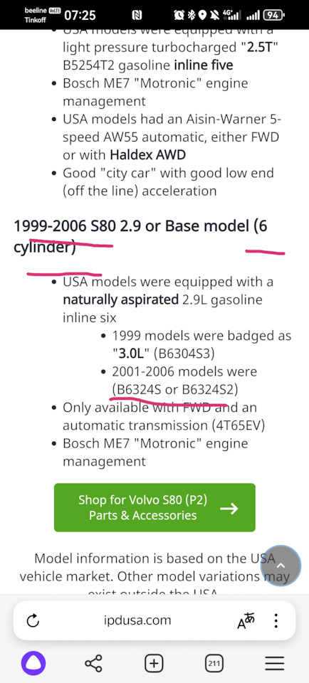 Кроме как здесь больше такой информации не где нет. Даже не в одном каталоге этих ДВС нет на эту модель. Да и для информации B6294T тяжелее чем B6304S и B6324S. И даже если где-то и существует эта мефическая S80 3.2 до 2006г. Весит она столько сколько S60 и они заметно легче XC90. И не просто так номера опор по каталогу разные.
