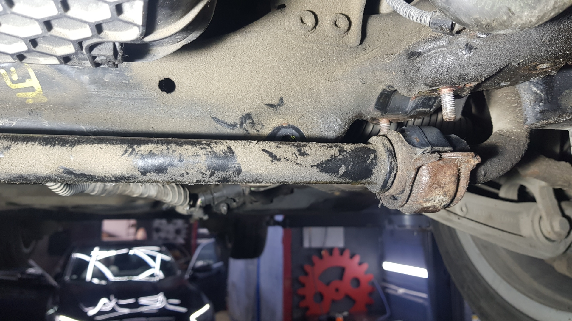 заменил 4 уставших болта перекрестной растяжки подрамника, их подъедает под шайбой: