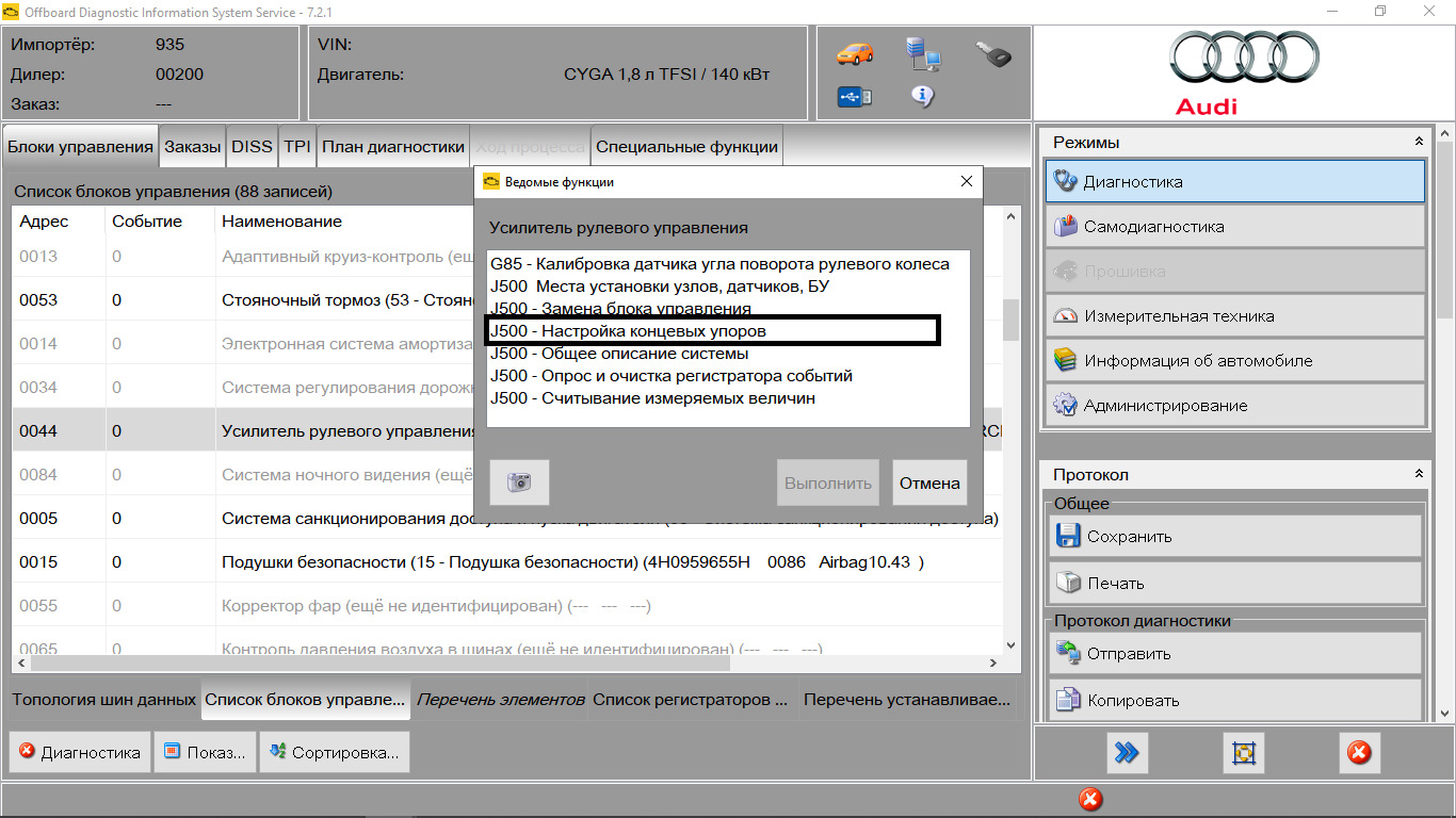 Датчик отвез на редактуру памяти EEPROM. После оживления датчика адаптировались крайние положения — можно через ведомые функции в odis-s: там все пошагово, градусы показывает и необходимое усилие (8нм) на руль, — а можно просто на месте: до упора в одну сторону до звукового сигнала, после — в другую и ровно по центру. После этого уходит желтый руль и пьяная дорога. Ошибку по подушке скинул через Ваську.