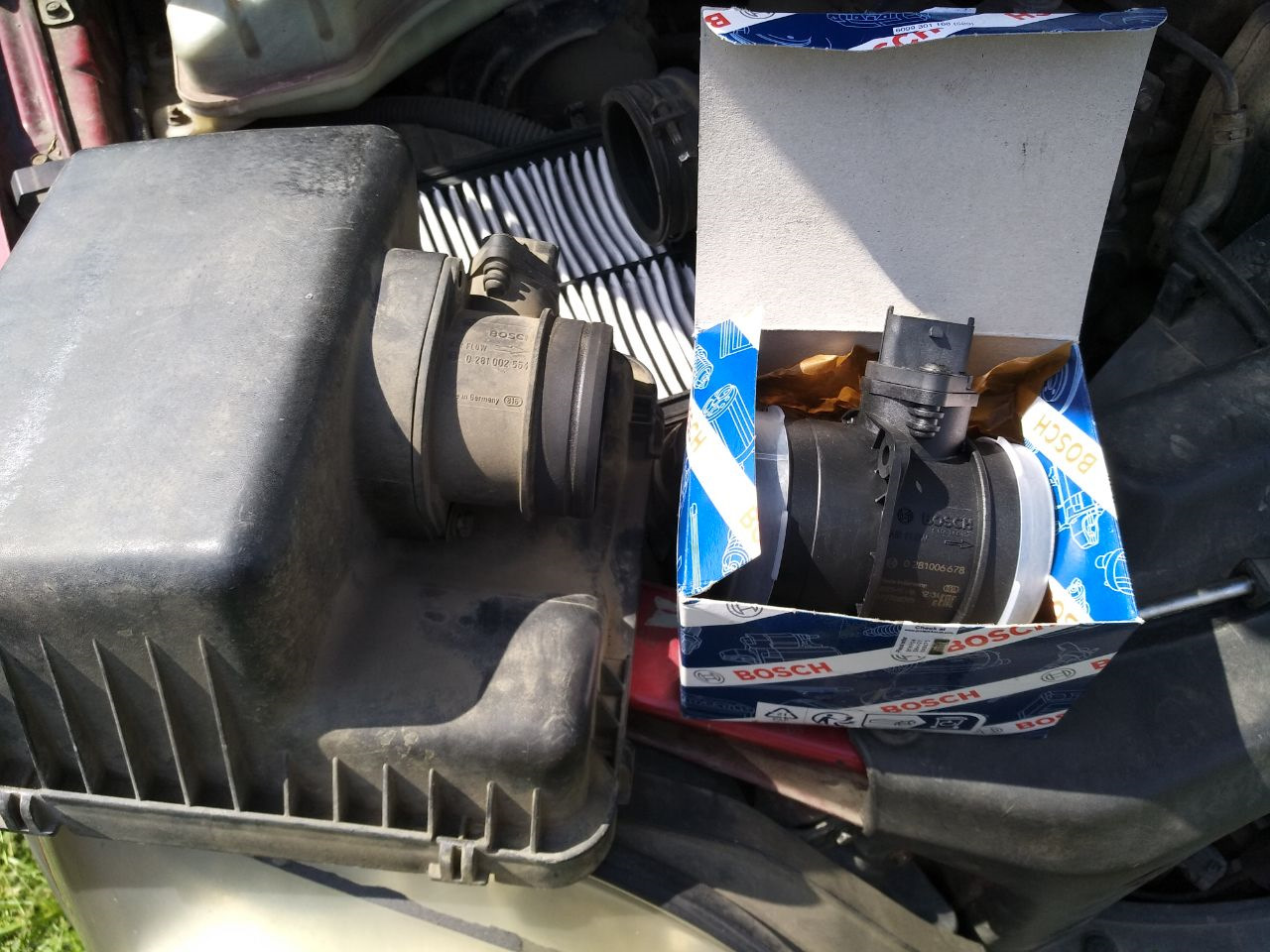 Сегодня начал менять турбину. Почти весь день провозился со снятием. Сперва открутил короб воздушного фильтра, попутно заменив ДМРВ на новый.
