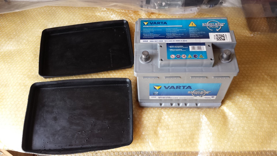 Поскольку имеется положительный опыт замены штатной батарейки на нечто более вменяемое, но большей ёмкости/пускового тока (в пределах разумного для генератора, разумеется), то и мелочи типа не точно совпадающих габаритов совершенно не смущают. Тем более, что идея поддержать отечественный автопром и разжиться универсальным резиновым поддончиком вполне себе жизнеспособна (от жадности по такой цене — целых 44р! — хапнул сразу два да оба в машину и уложил, один в другой :-)):