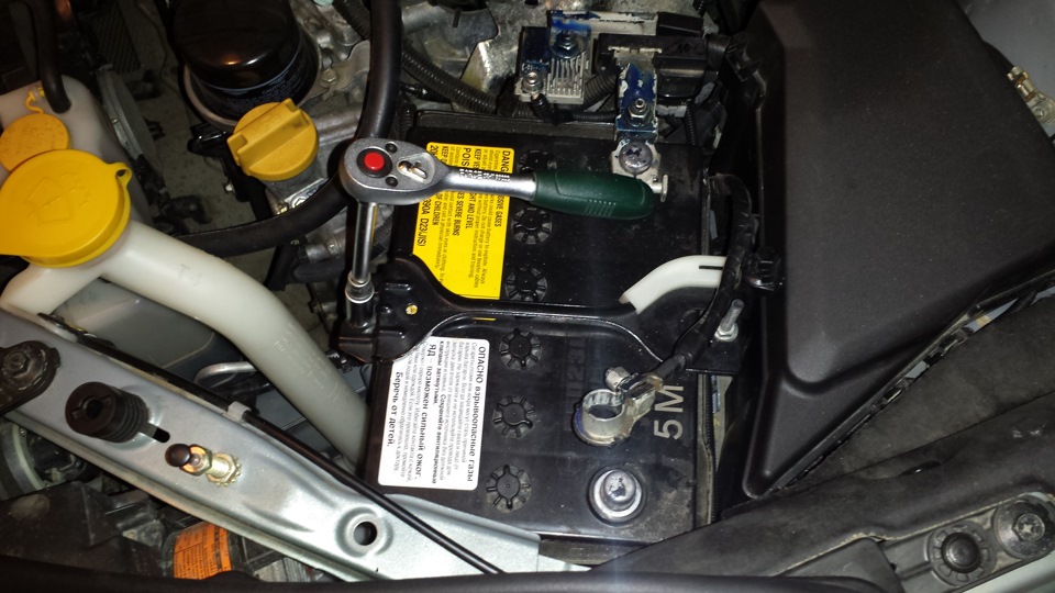 Батарейка встала нормально, прижалась скобой, разве что минусовой жгут пришлось подвязать стяжками вместо штатной фиксации — рельеф нового АКБ помешал нормально одеть фиксатор на шпильку: