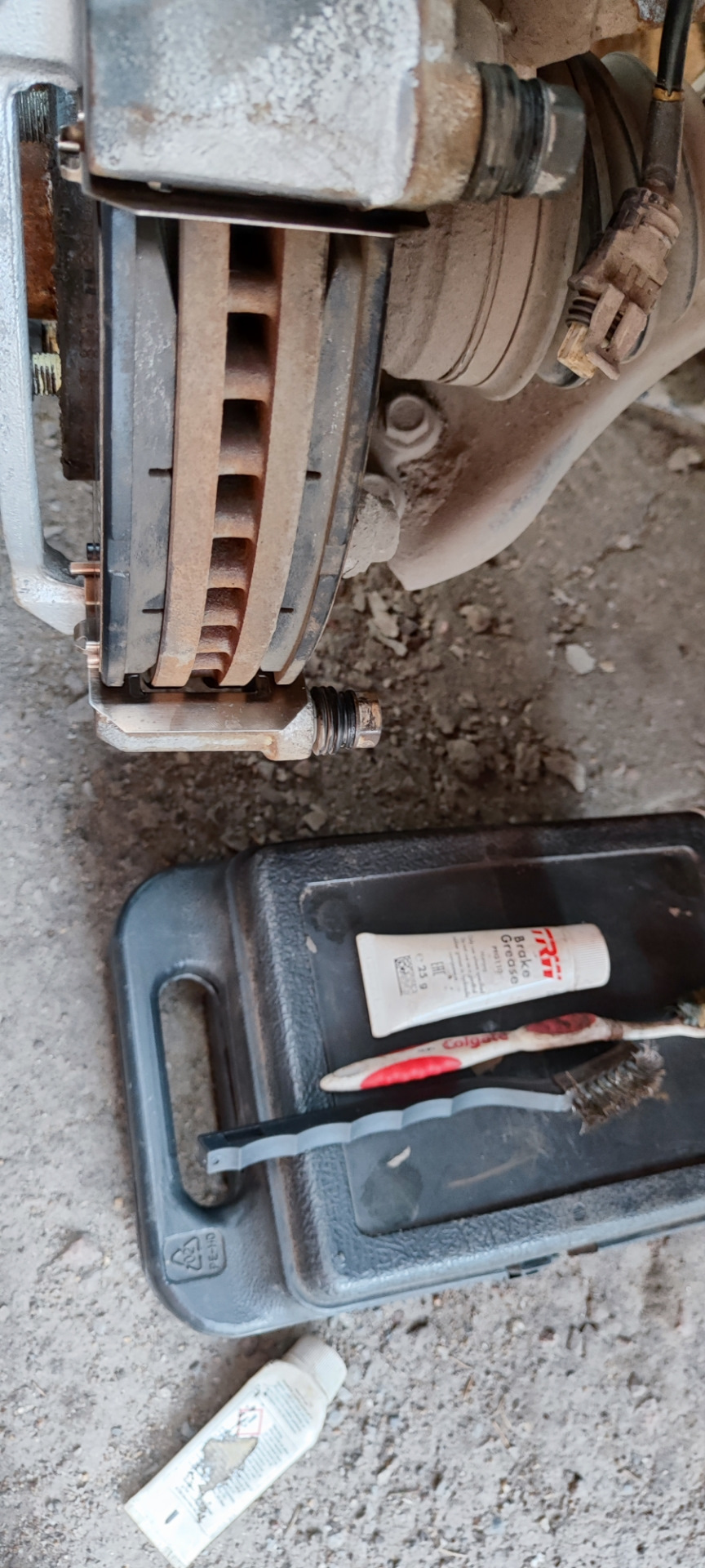 -обслужил тормозные колодки и скобы;