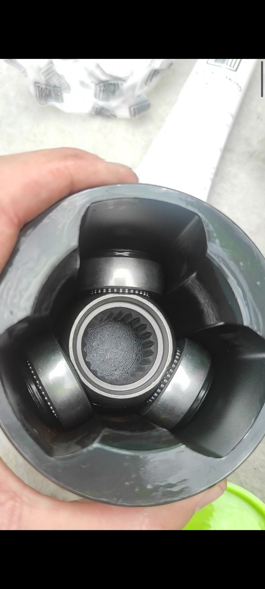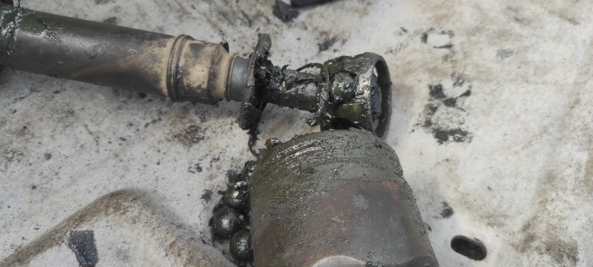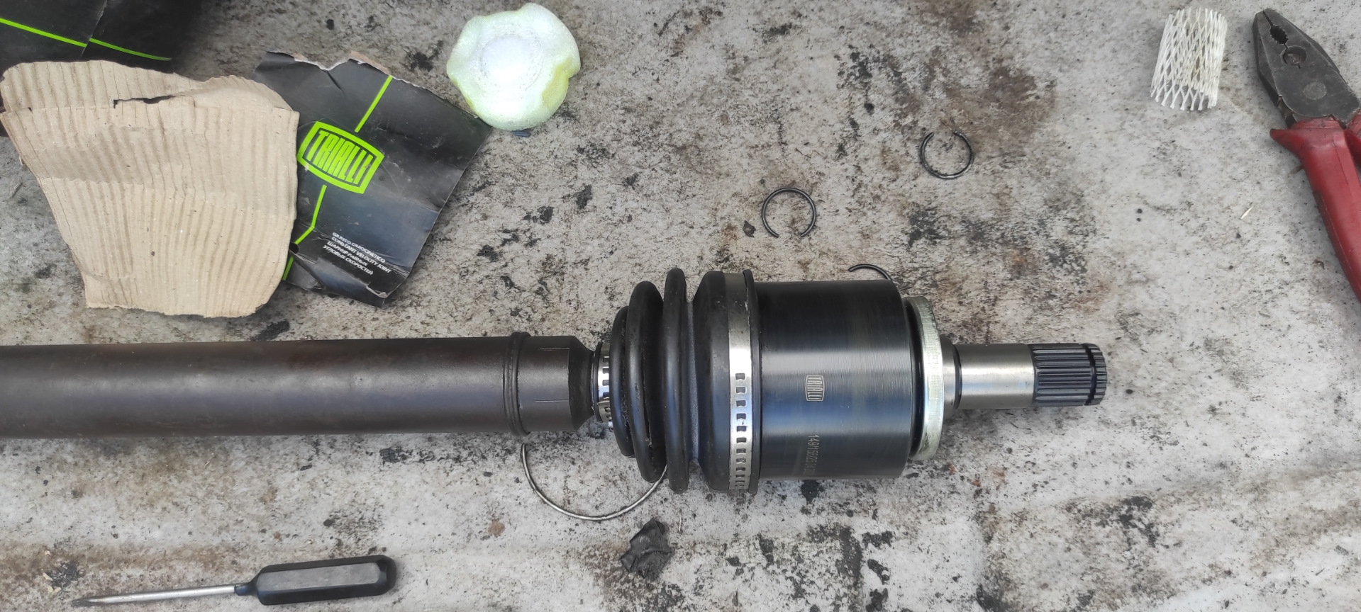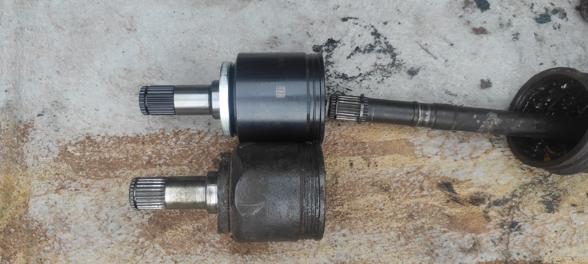 Ели ели выдернул ШРУС из кпп, точнее вылезли кишки на скалке а вот корпус остался в КПП, там его и оставил, кишки рассыпались, ели выбил со скалки остатки шруса, вторая сторона тоже рассыпалась, но уже после изъятия ее из кпп.