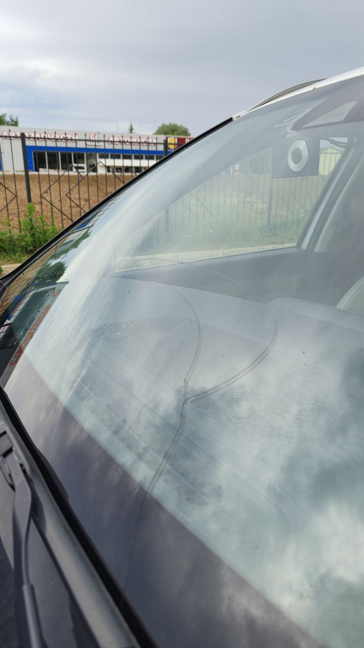 Еще осенью словил в лобовое то ли шип, то ли камушек, в общем получил скол и мелкую трещинку на лобовом стекле, немного выше дворников примерно по центру стекла.