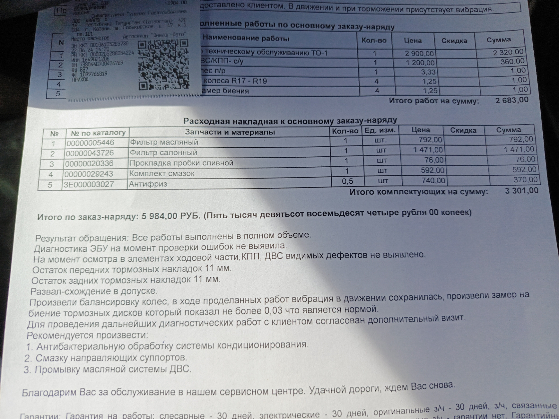 Как итого ТО провели, сделали замер на биение диска и балансировку колёс. Результат не изменился как была вибрация так и осталась.