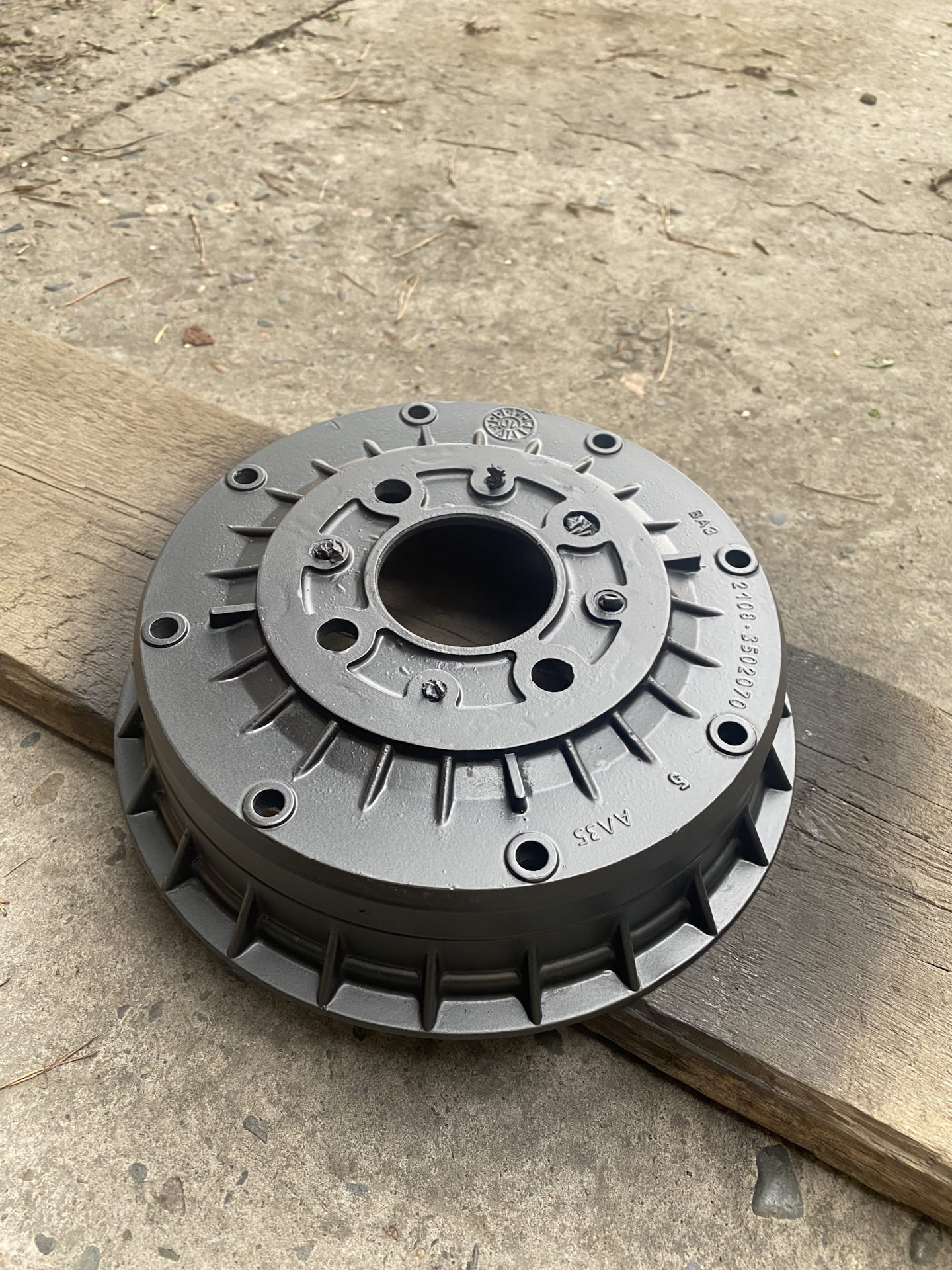Почистил, покрасил в черный мат, заодно и задние барабаны освежил.