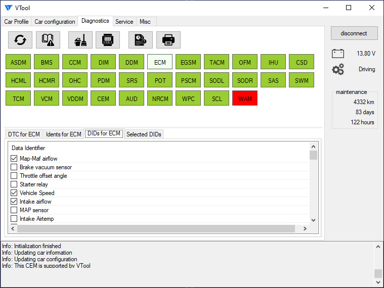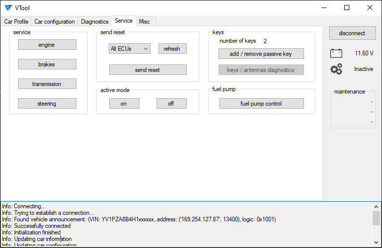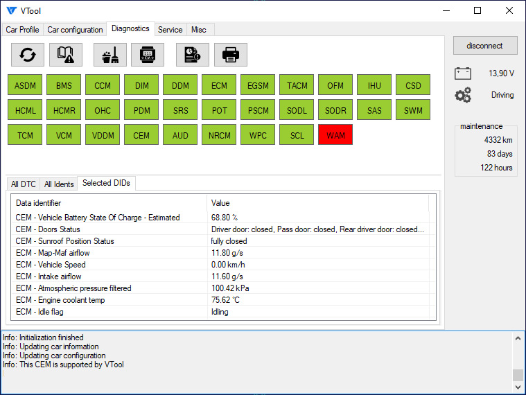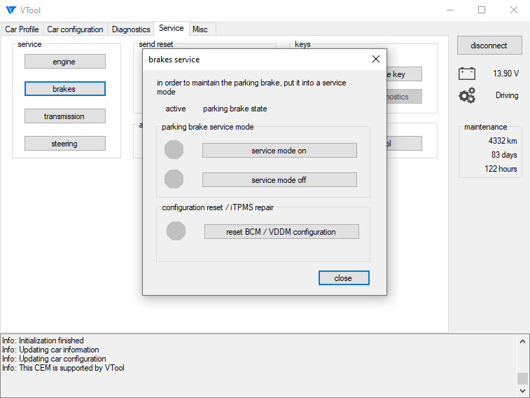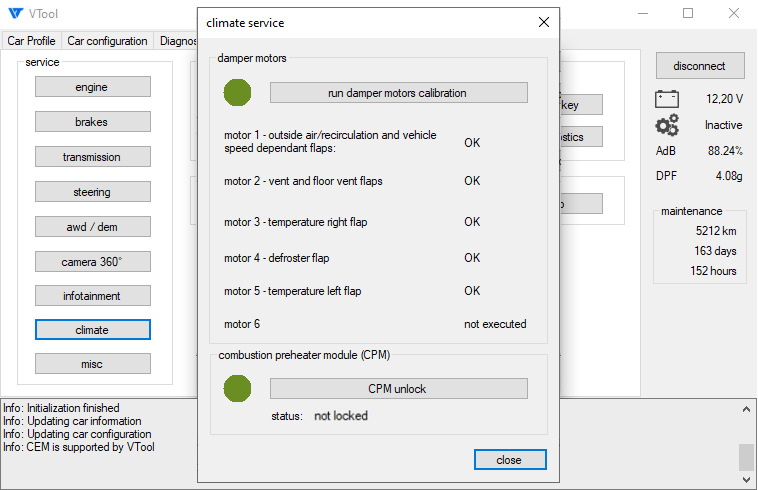 Он включает в себя чтение и сброс ошибок, запуск/сброс различных калибровок, сервисный режим стояночного тормоза, сброс межсервисного интервала и просмотр онлайн полезной для диагностики информации из блоков управления, примерно как это делает VIDA, детализация ошибок конфигурации, чтение пробега из всех блоков и другое.