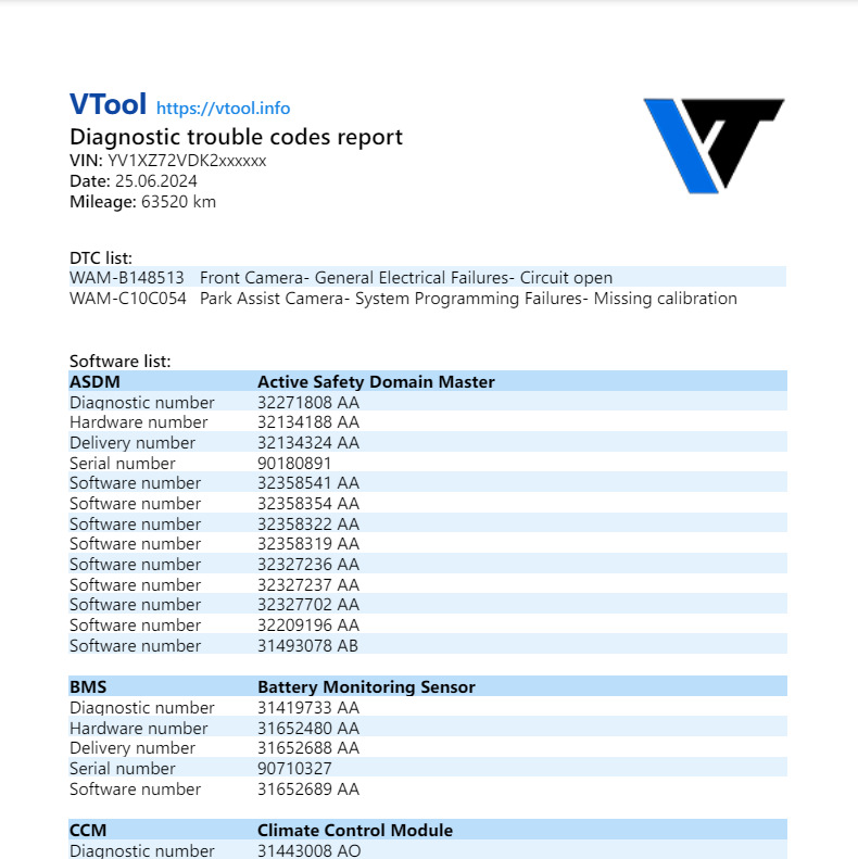 Добавил пару отчетов, чтобы получить в PDF список ошибок, номера софтов всех блоков управления и конфигурации авто.