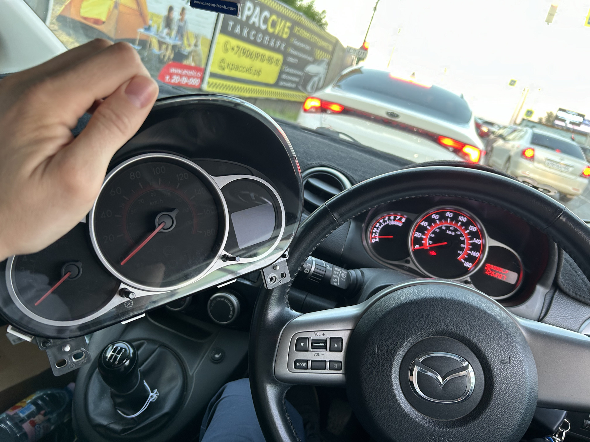 Будучи сразу после покупки данной Demio я установил приборку обычную, но с рейстайла. Тем самым я очень привык к показаниям бортового компьютера (вроде мелочь, а приятно). Установив обычный оптитрон я показания бк потерял 🥲