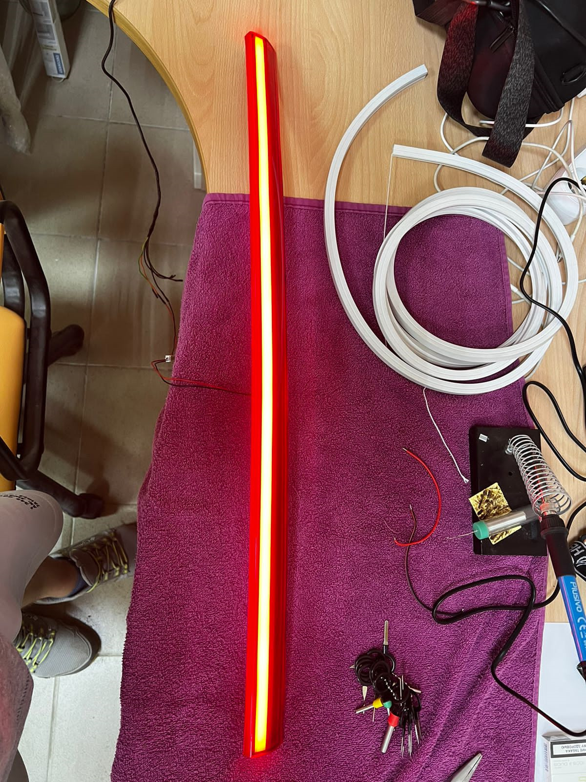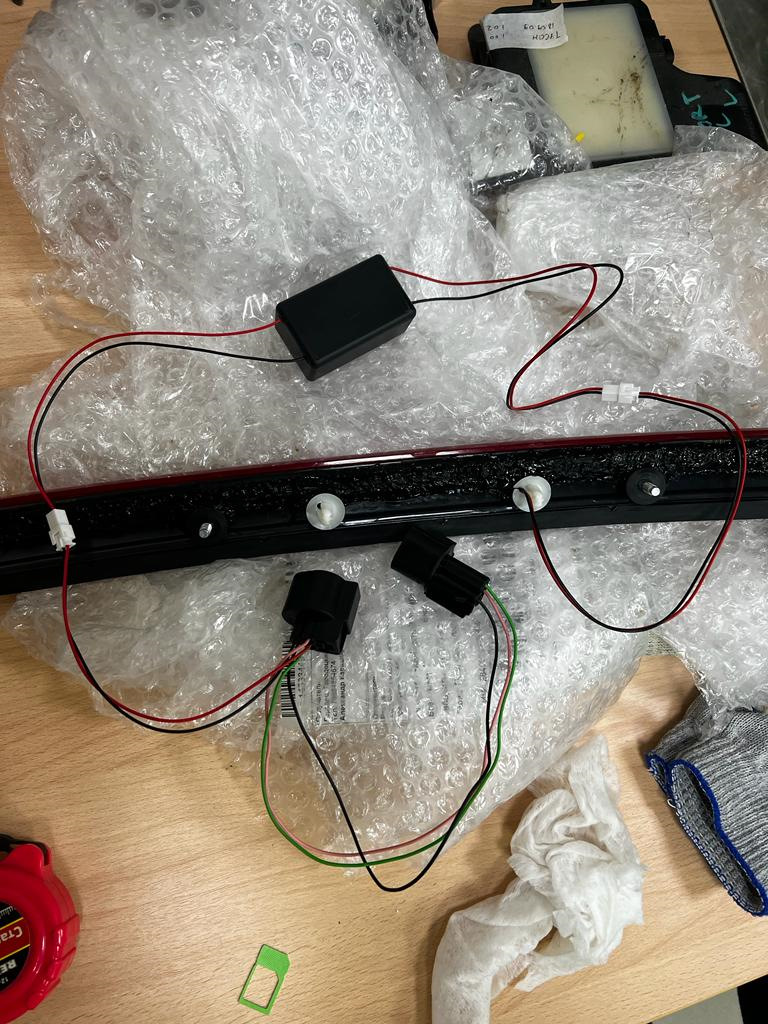 3. Установил подсветку в обшивку двери багажника для комфортной разгрузки-загрузки в ночное время. Питание взял прямо из самой двери багажника.