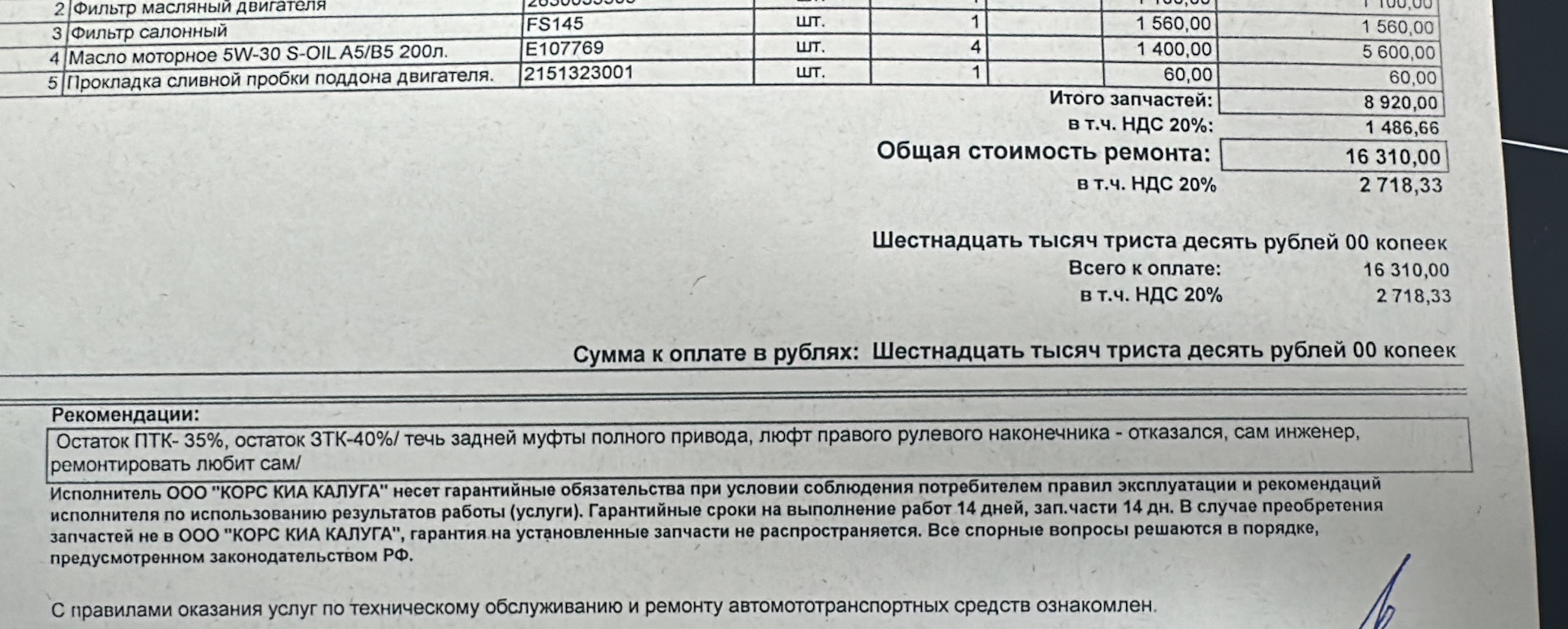 На этом было решено, что к дилеру на ТО больше ни ногой. Стало слишком дорого, да и вопрос запчастей открыт(