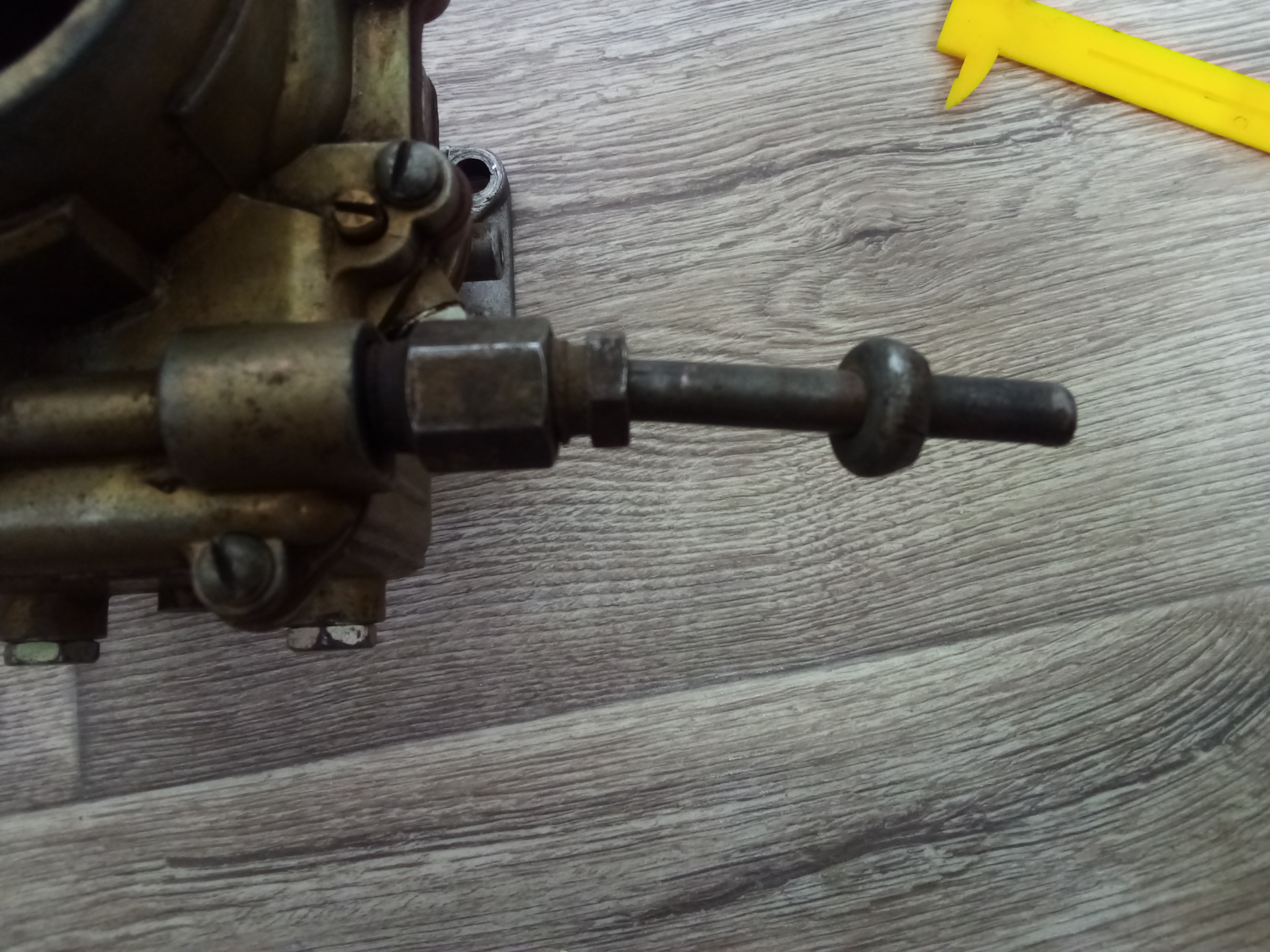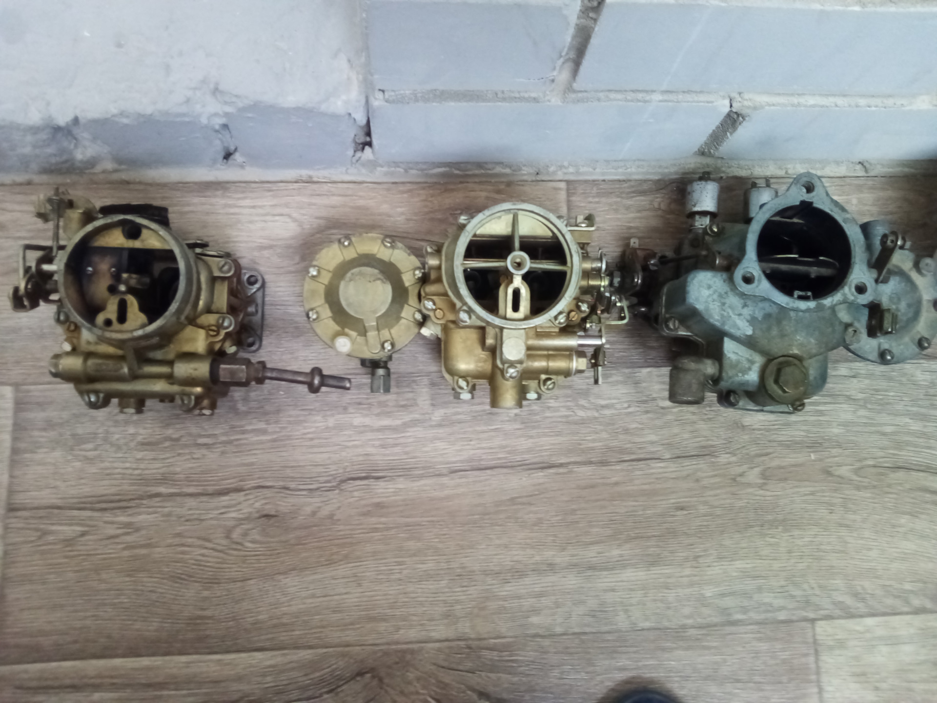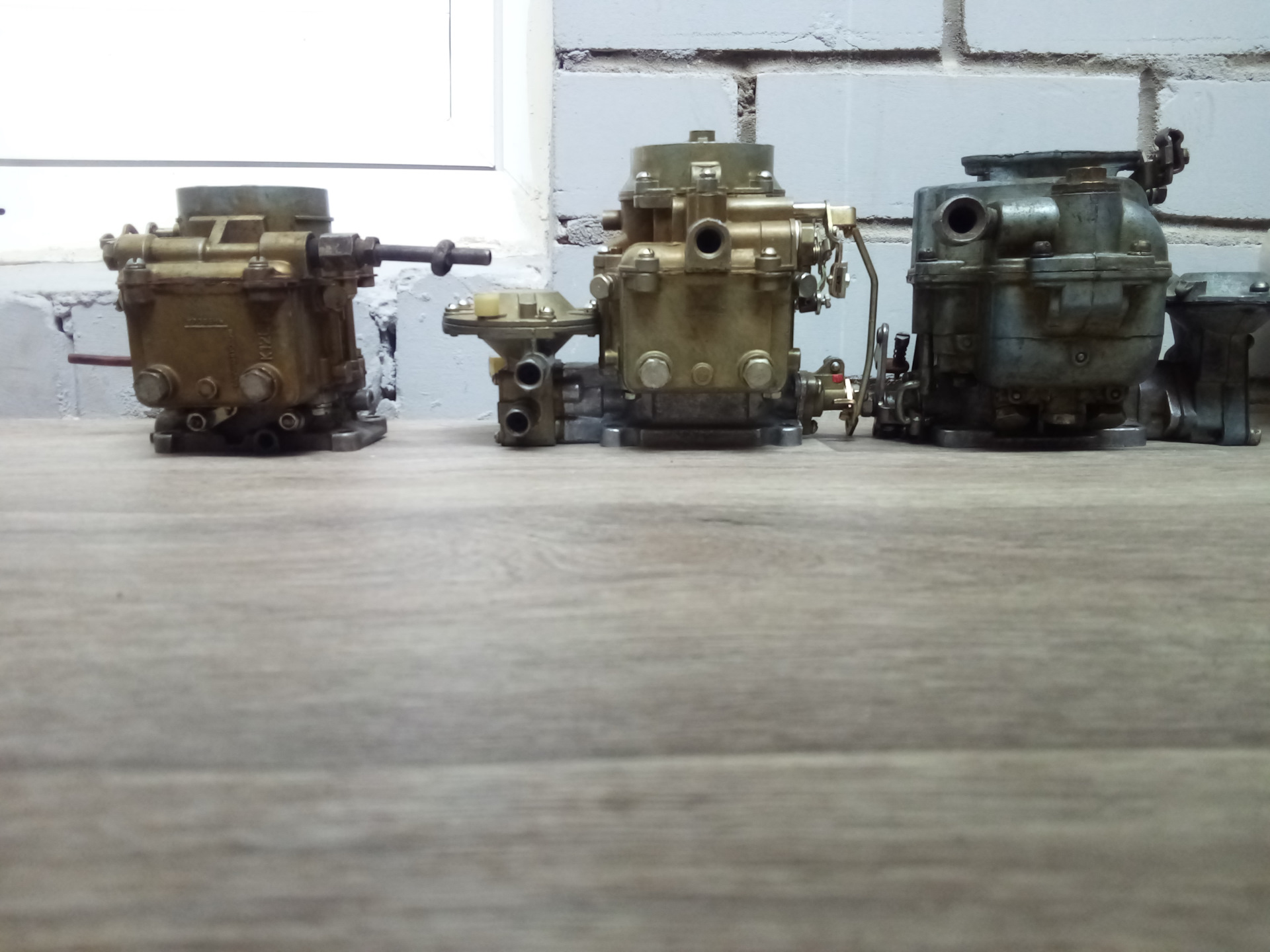 Сюда же отнесу старый некомплектный москвичевский к-126н, который я случайно нашел на полках гаража. С большой вероятностью, этот карб постоял под капотом нашего старого 469-го. Мне он понравился тем, что у него есть смотровое окно уровня топлива, на более свежих карбюраторах этого уже нет. Ну и прикольный момент — латунный поплавок, а не пластмассовый.
