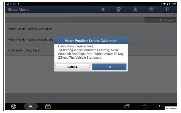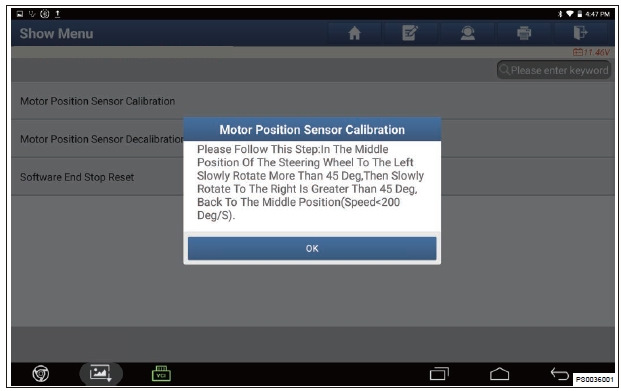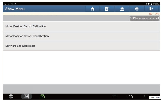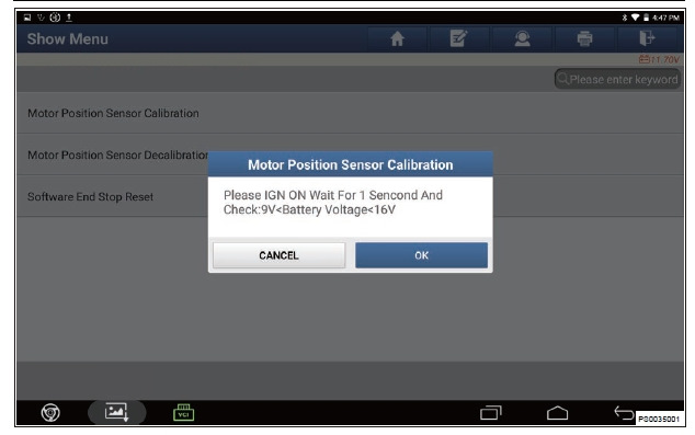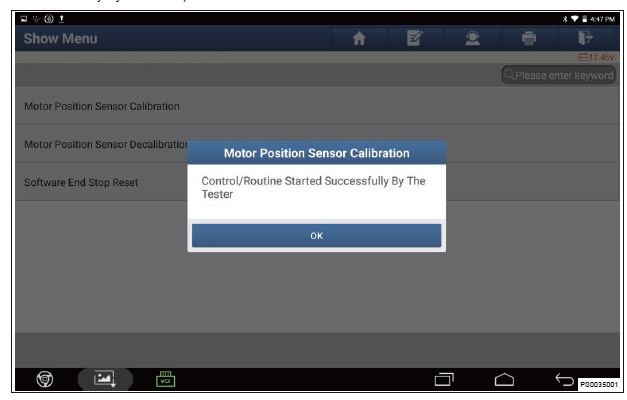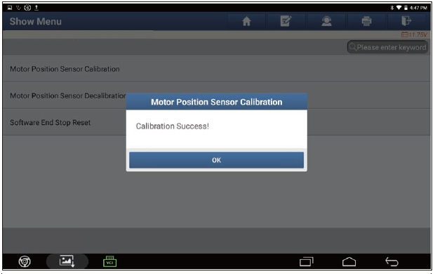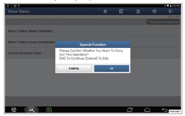5. Перейдите в следующий интерфейс и нажмите «Калибровка датчика положения электропривода» (Motor Position Sensor Decalibration).