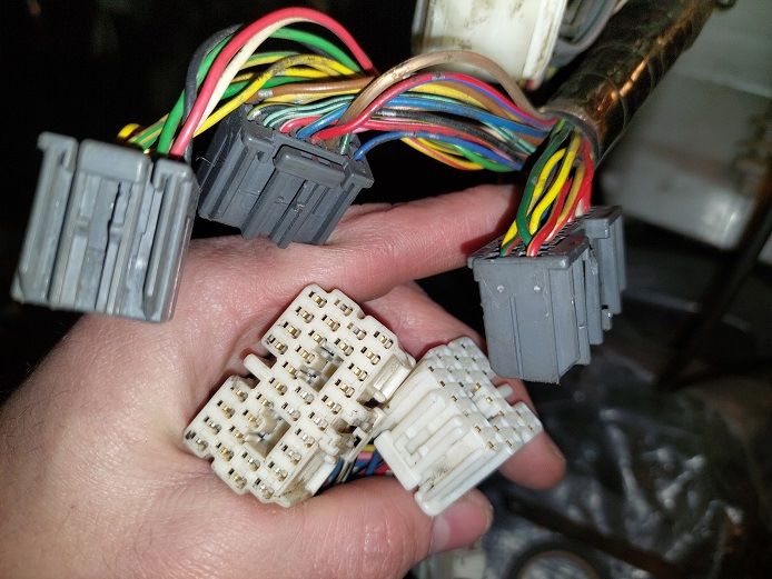 Дополнительно кидаем провода на датчик выходного вала АКПП, датчик положения дополнительной дроссельной заслонки, сервопривод дополнительной дроссельной заслонки и дополнительные три провода для форсунок. Также, меняем фишки под ЭБУ. Всё это нужно было для внедрения полноценной системы TRC и замены ЭБУ ДВС на 2JZ-GE.