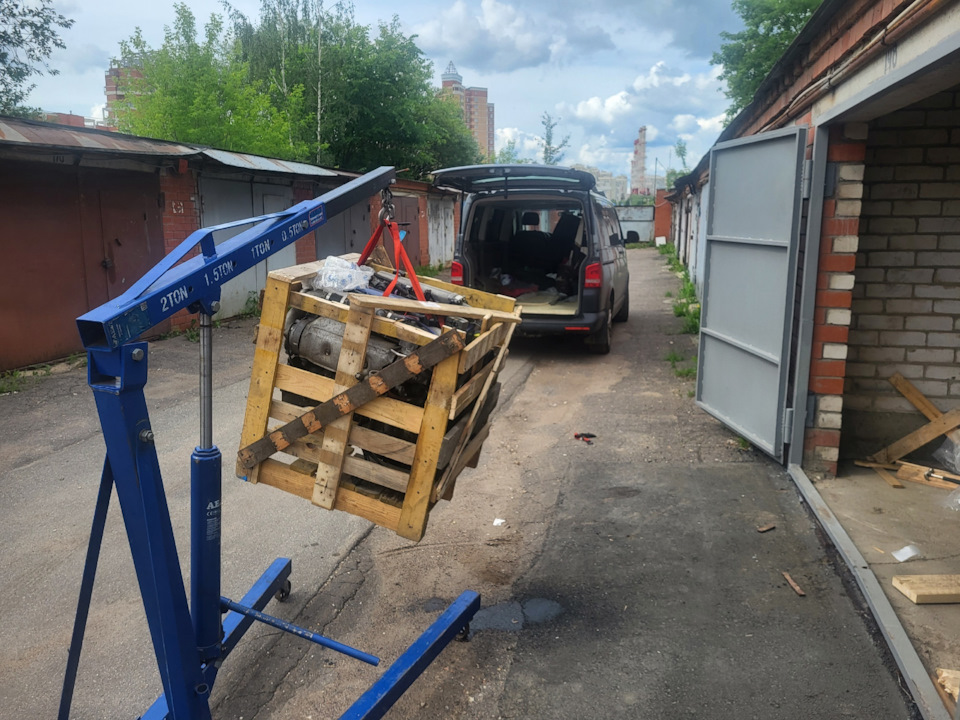 Делал всё один, без каких либо особенных проблем справился с разборкой и изымание двигателя за один вечер.