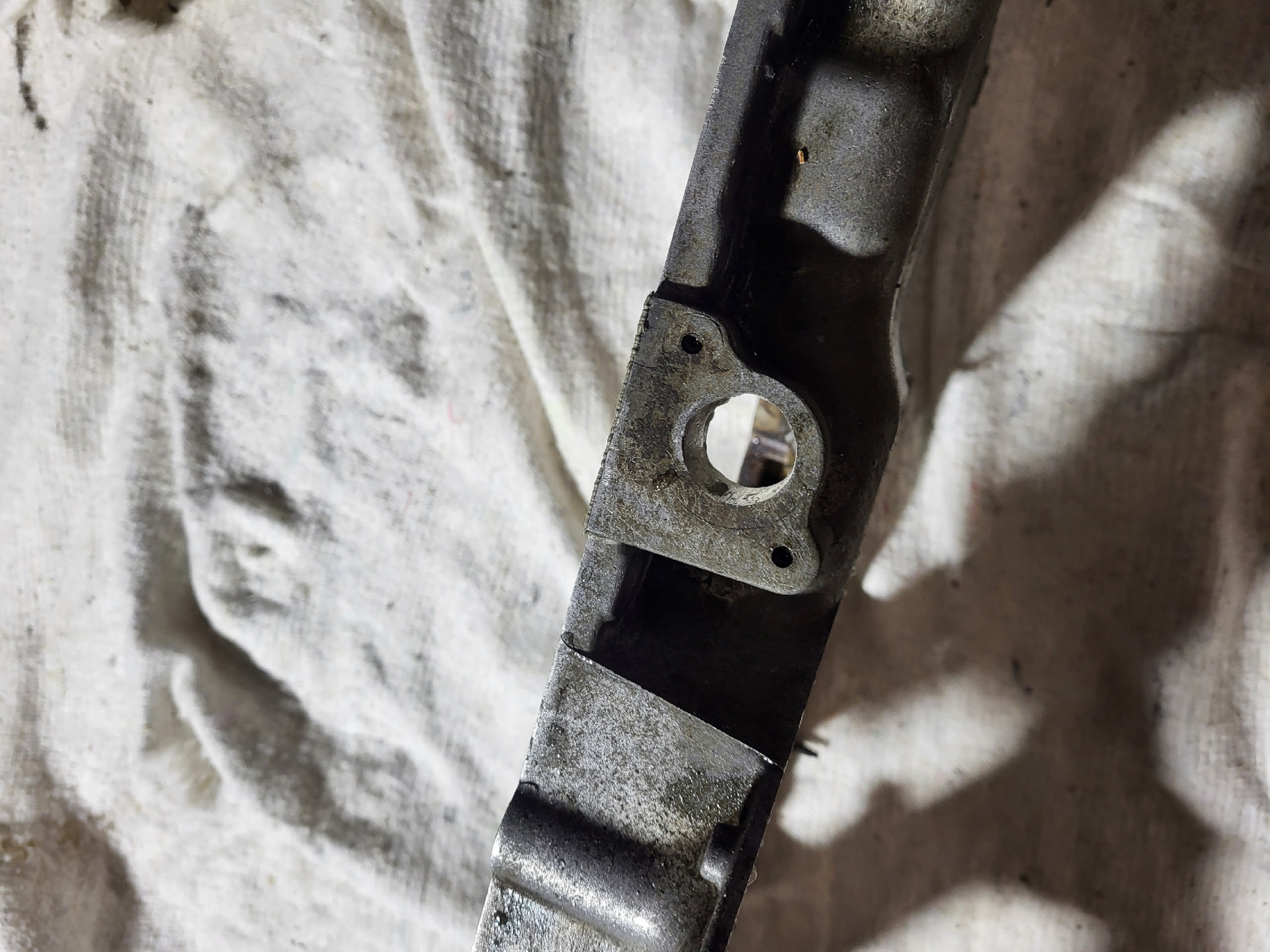 Да еще и прикручен был выпускной коллектор к блоку хер пойми как. Половина шпильки, половина какие-то болты… И сделано так было потому, что половина резьб были сорваны к чертям. Штош.