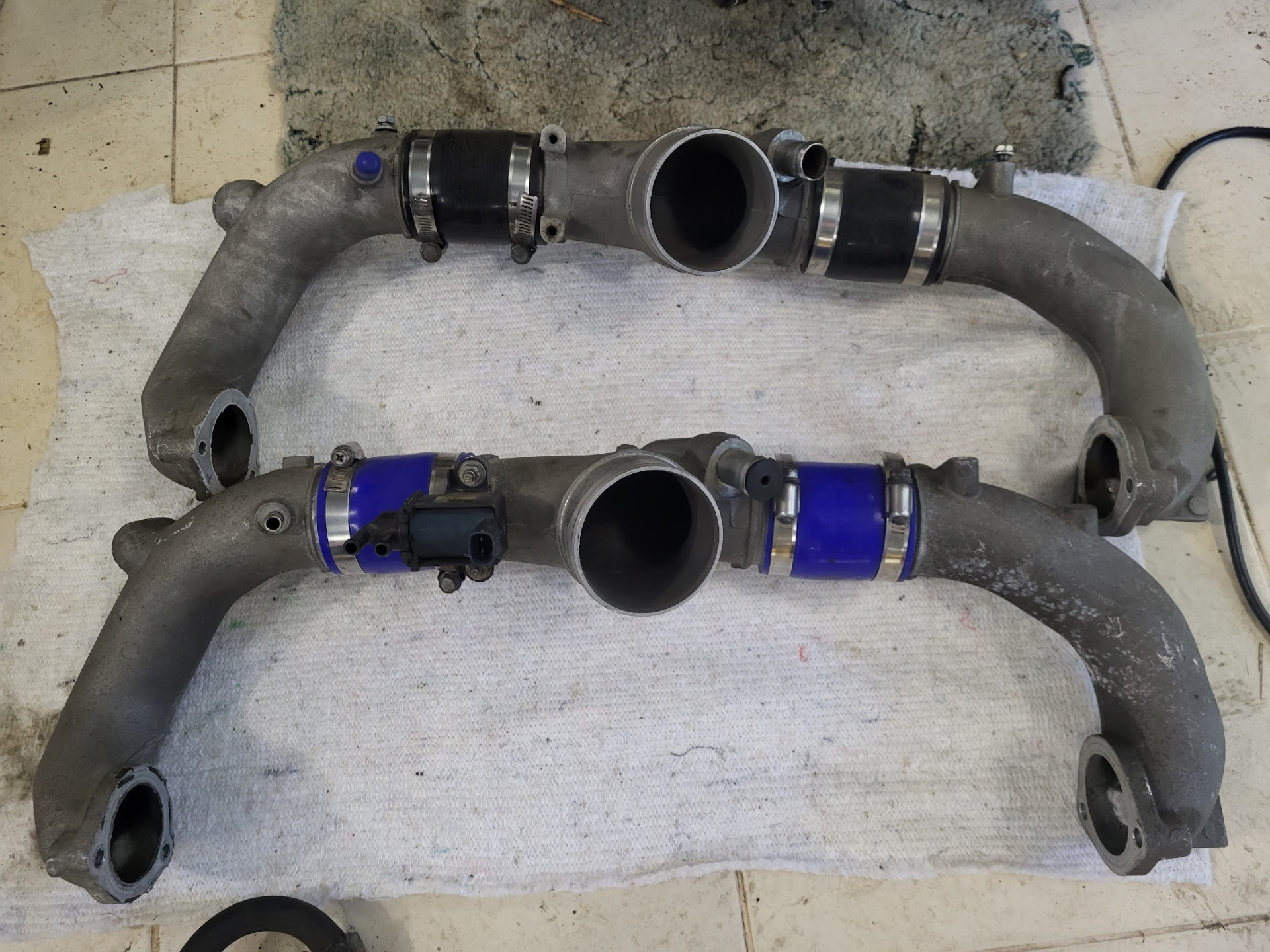 Далее обнаруживаю, что и на новых турбинах и на старых была реализована какая-то своя "особая" система работы турбин. чё-то заглушено, чё-то перекинуто… Я так понял, что цель была заставить турбы работать параллельно сразу, чтобы избавиться от хитрой системы управления режимом их работы, предусмотренной заводом-изготовителем. Мне такая фигня не по нраву, и я решаю собрать из двух имеющихся впусков один, но по заводу.