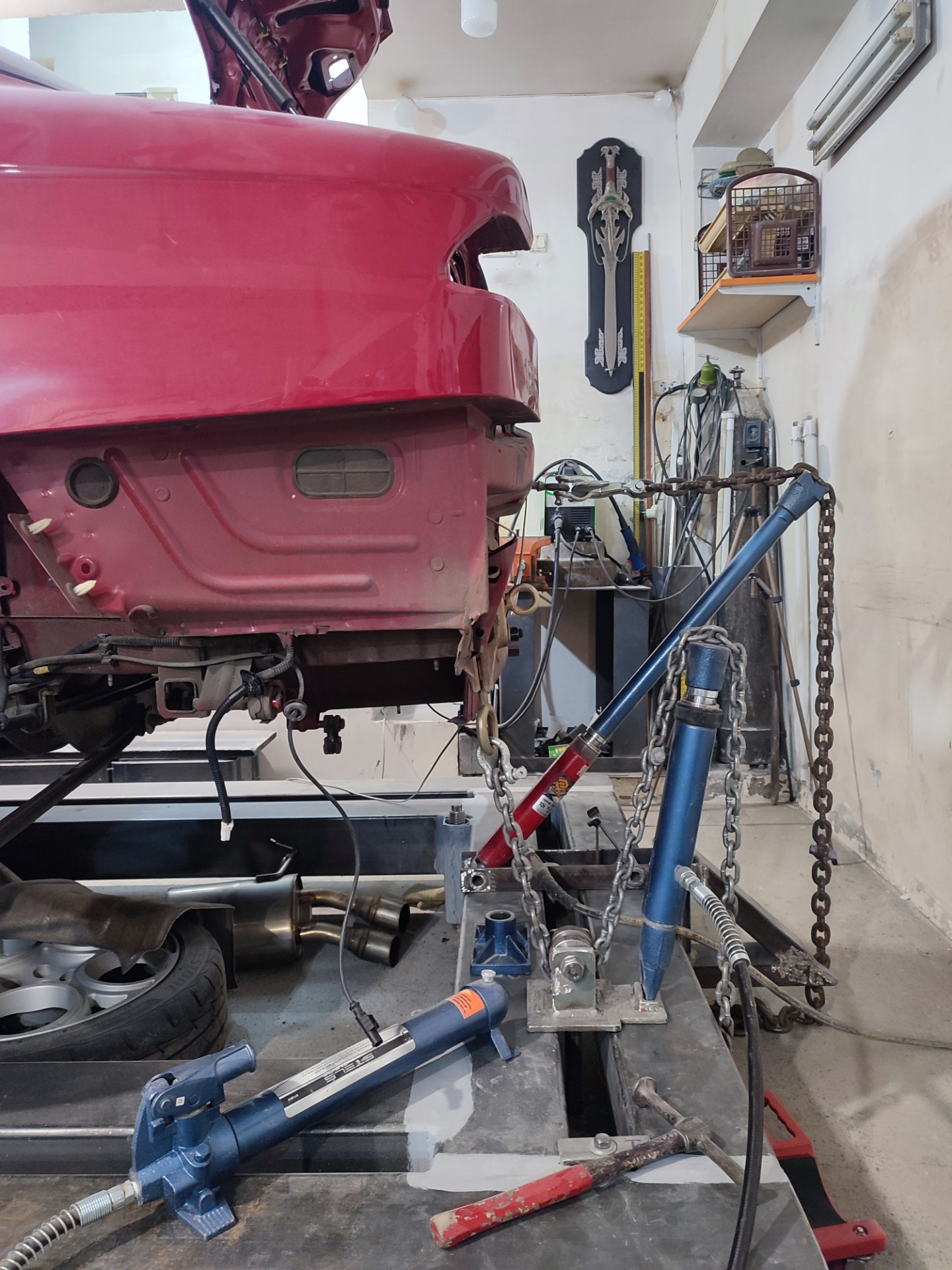 Очень медленно, но всё же продвигаемся вперёд, всё уже выправлено (ну почти) и остаются несколько мелочей в районе порогов. Ещё нужно выбрать какие бампера лучше (чудом нашёл живые б/у бампера, но это отдельная история)), передний однозначно менять, насчёт заднего пока не решили, нужно примерить купленный, не деформирован ли он. Ну а потом самая вкусная часть — подготовка к покраске 😋