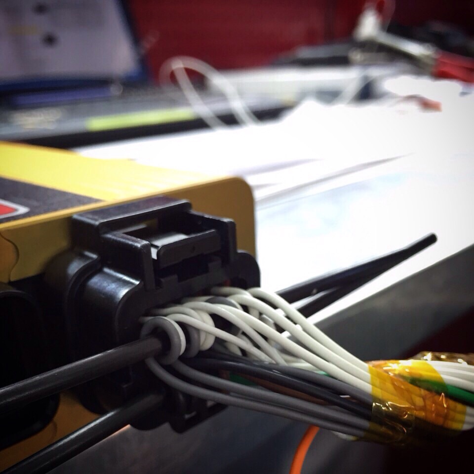 Используемые материалы: провод Raychem Spec44 (Military Specification Mil-W-81044)размеры AWG20 и AWG16, термоусадка Raychem DR-25 (Military Specification MIL-DTL-23053/16) UK specs, клеевая термоусадка Raychem SCL (Military Specification AMS-DTL-23053/4, Class 1), разветвители Raychem, оригинальные коннекторы Bosch на сенсоры и блок управления ABS, резиновые пыльники на коннекторы — BMW, разъемы и виниловый пыльник разъемов блока управления ДВС — Motec, дополнительные соединительные разъемы Deutsch серий DTM и DT.