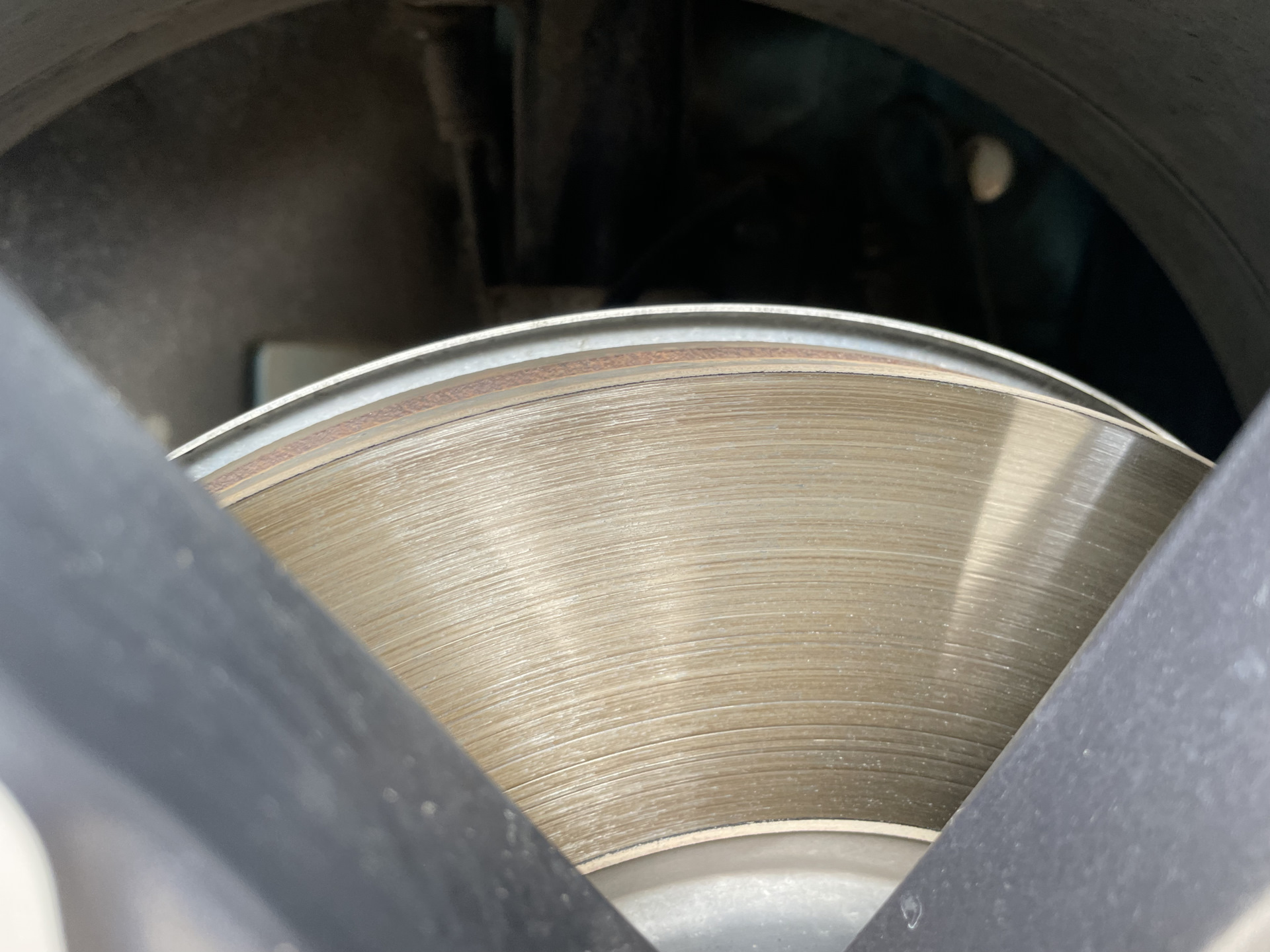 Посмотрите, как они прикручены: к ступице, поджаты суппортом, минимальный зазор до колодок — они всегда подведены к диску. Если бы они были кривые, вы просто представьте какая была бы вибрация с самого начала движения. Еще и суппорт бы разбило или натерло. Но такого не происходит. Когда у колеса несколько граммов дисбаланс, то уже вибрация, а тут целый кривой диск.