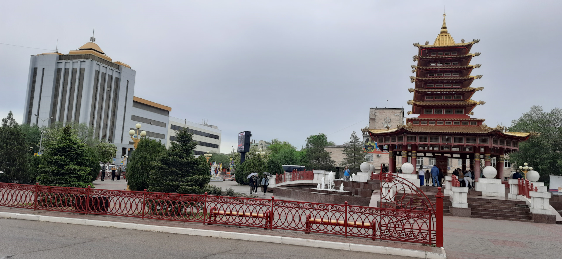 Утром первым делом отправились побродить по центральным улочкам Элисты. Погода, испортившаяся еще вчера, и сегодня не благоприятствовала. Пришлось утепляться и доставать зонты. В целом, для себя сделал вывод, что одного дня для знакомства с городом вполне достаточно. Он очень компактный и небольшой, все основные достопримечательности сосредоточены в центральных кварталах.