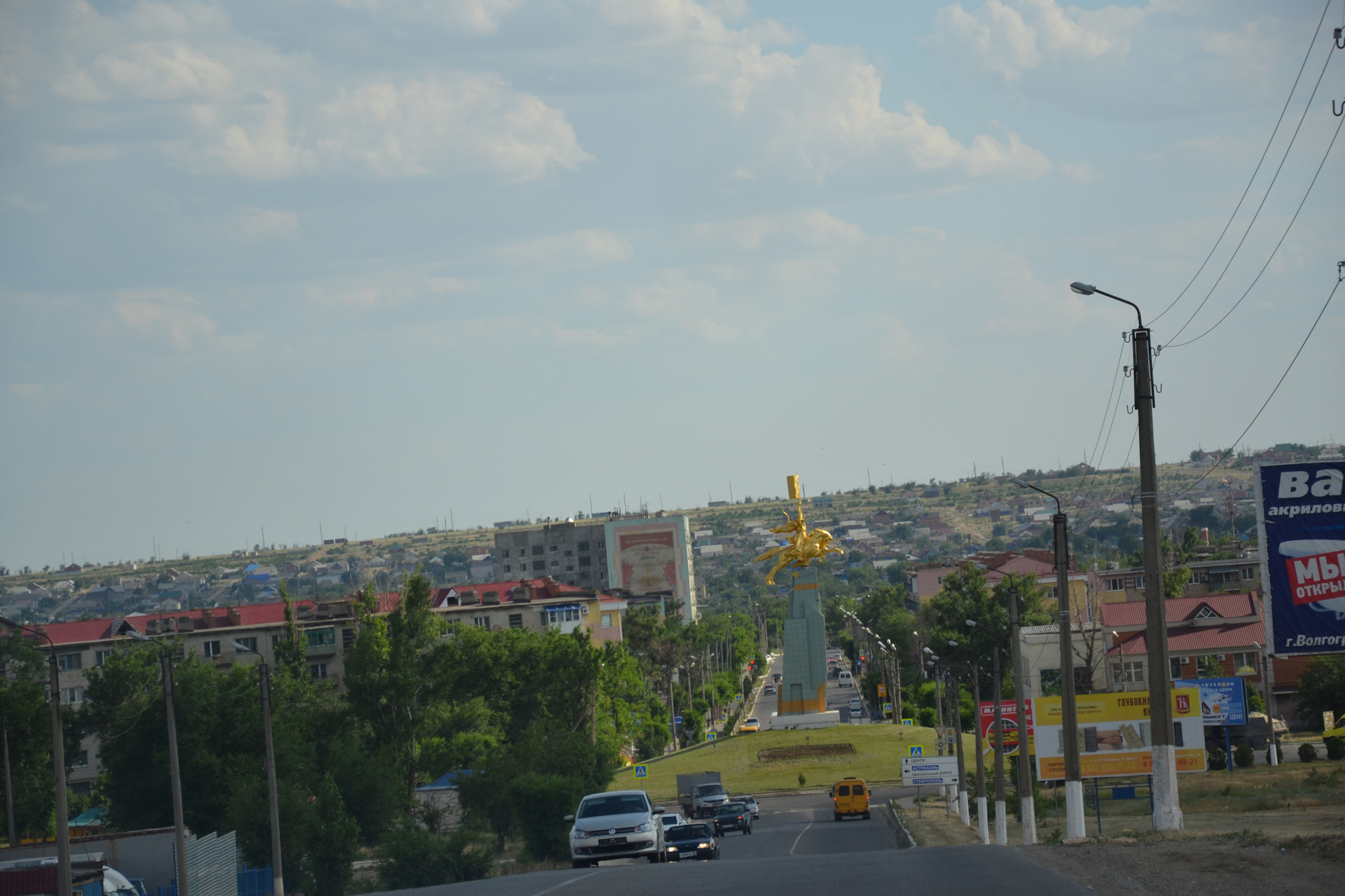 Итак, мы возвращаемся домой. Но не просто едем из точки А в точку Б, а ПУТЕШЕСТВУЕМ! Именно поэтому наша следующая точка интереса в пути, это столица Калмыкии – Элиста. Маршрут из Дагестана предельно прост. Возвращаемся по той же самой трассе Е119 до Артезиана, а дальше сворачиваем налево в сторону Комсомольского. Дороги в Калмыкии ровные, но с ямками, надо быть осторожнее, чтобы не влететь в них. Ехать крайне скучно, так как кругом равнина и степи. Главное в такой ситуации не уснуть и в этом деле нам очень помогают аудиокниги, заранее закачанные на флешку.