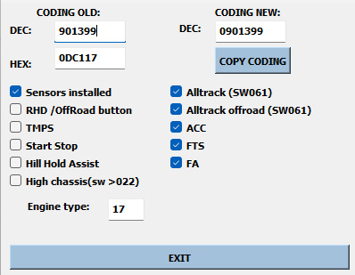 ВАЖНО: Изменить индекс на VE и заливаемый блок данных на полный это еще полдела, после этого блок заработает на Passat B7, но при попытке поставить его в Sharan (7N), Tiguan (5N) или AUDI (8U) мы получим ошибку по ручнику, при которой ABS тоже падает в ошибку, не работает. На Passat B6 без замены кнопок упраления ручником мы тоже получим ошибку ручника (программно ее можно убрать).