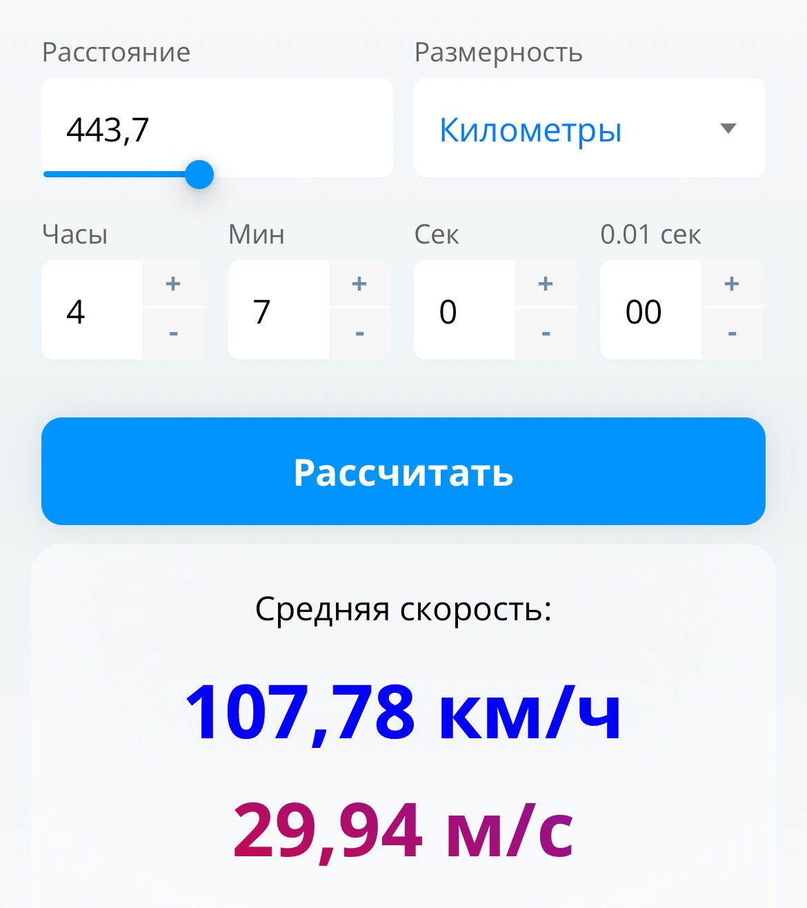 Евген, ты умеешь рассчитывать среднюю скорость? Делением?)))))