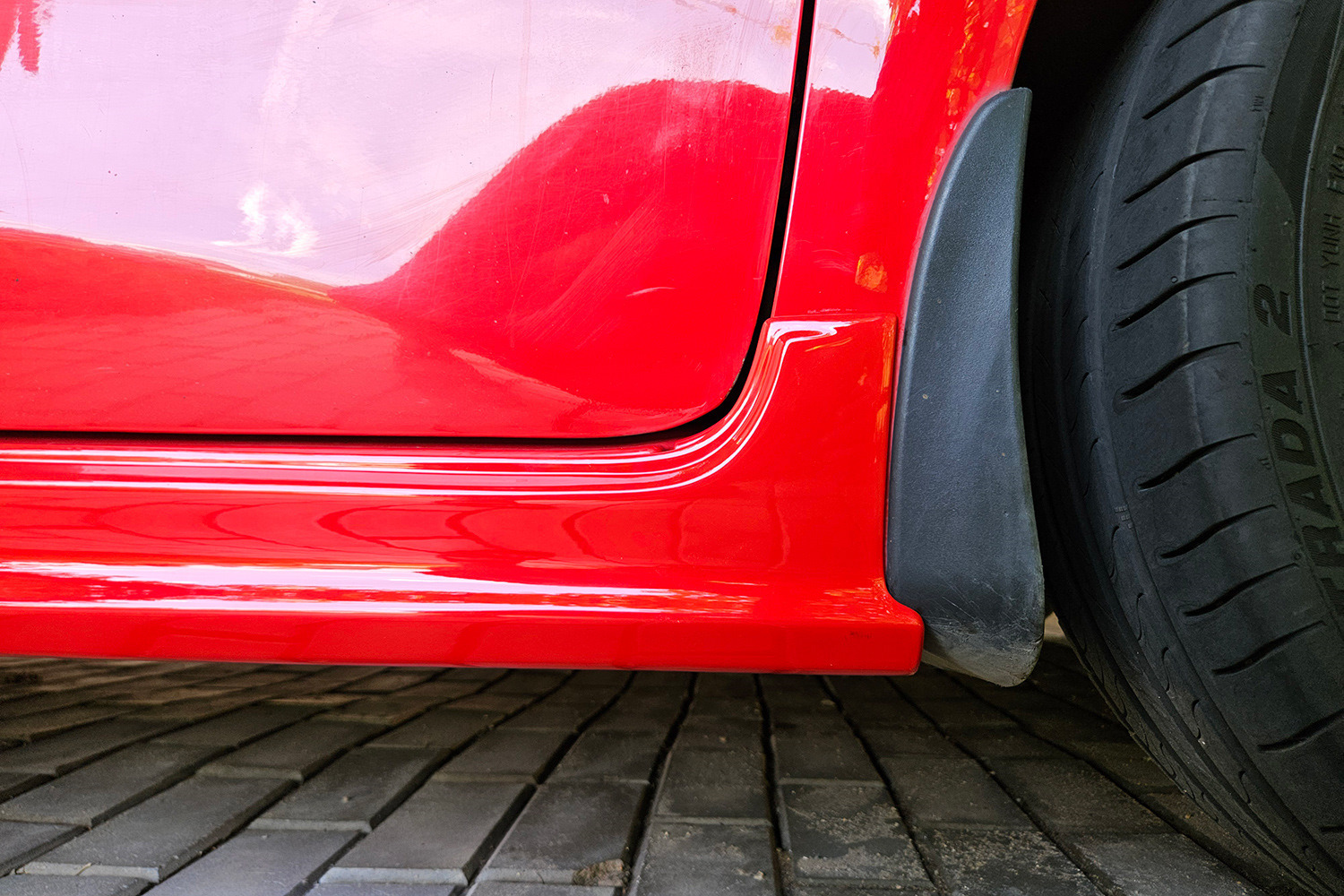 То ли машина у меня чуть короче некоей "эталонной", то ли пороги на сантиметр длиннее, чем надо, то ли еще какая беда, но сзади накладка на тот самый сантиметр выпирает внутрь колесной арки. Если знать и присматриваться, выглядит так себе.