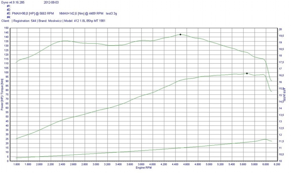 вообще когда едешь на этой машине, то кажется что сил 150, а если ехать пассажиром, то еще больше. 99коней это на самом деле очень много. Конечно можно было бы еще немного из него выжать, но тогда он уже потерял бы свой ресурс, а ведь перед диностендом он проехал 40 000км. Вообще в подобных графиках я смотрю в основном на момент и если кривая ровная и достаточно большая, то я считаю это отличным мотором.