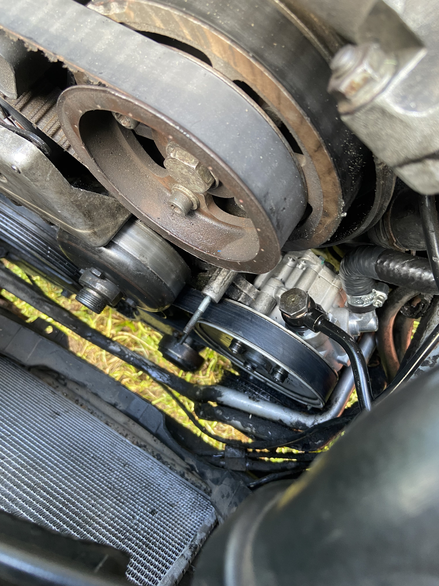После вискомуфты снимаются пластиковые кожухи защиты, в т.ч. и на ГРМ. К слову, папа сказал, что ремни ГРМ и ТНВД тоже меняются из этого «сервисного положения», не обязательно снимать радиатор, сливать антифриз.