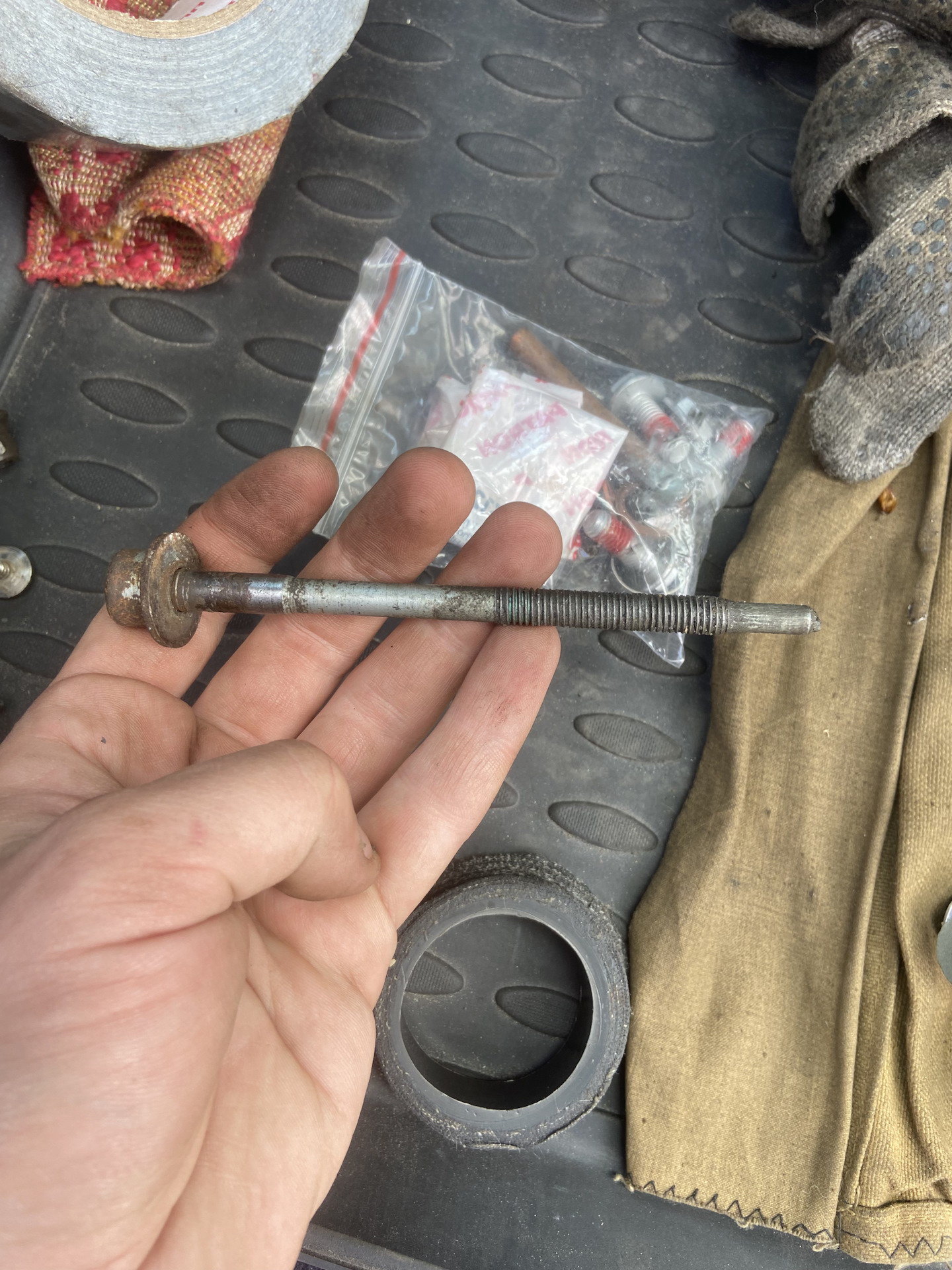 P.S. Один болт на «клык» с внутренним «торкс» был слизан, так что я предварительно приобрёл похожий болт. По магазинам не нашёл. Можно с алиэкспресса заказать такой же, но я нашёл на разборке похожий — подошёл. В длину 13 см.