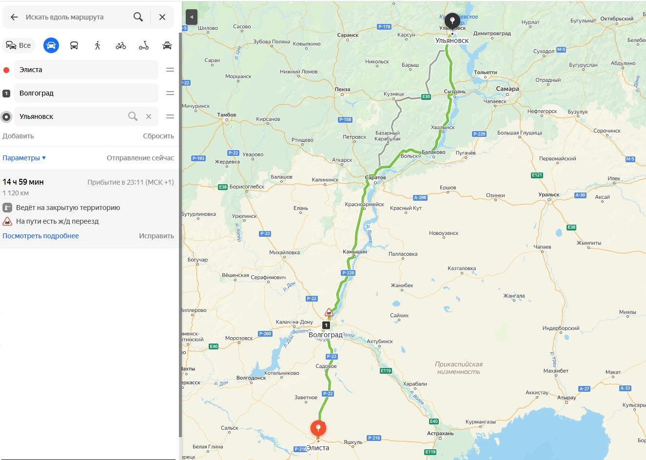 Маршрут: Элиста-Волгоград-Ульяновск. Расстояние 1120 км.
