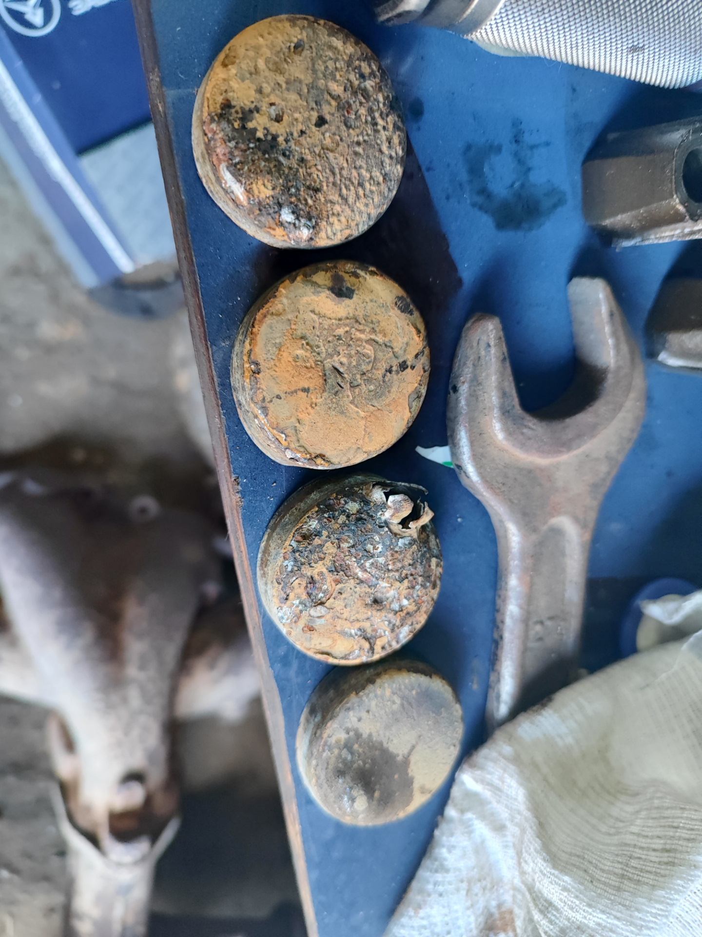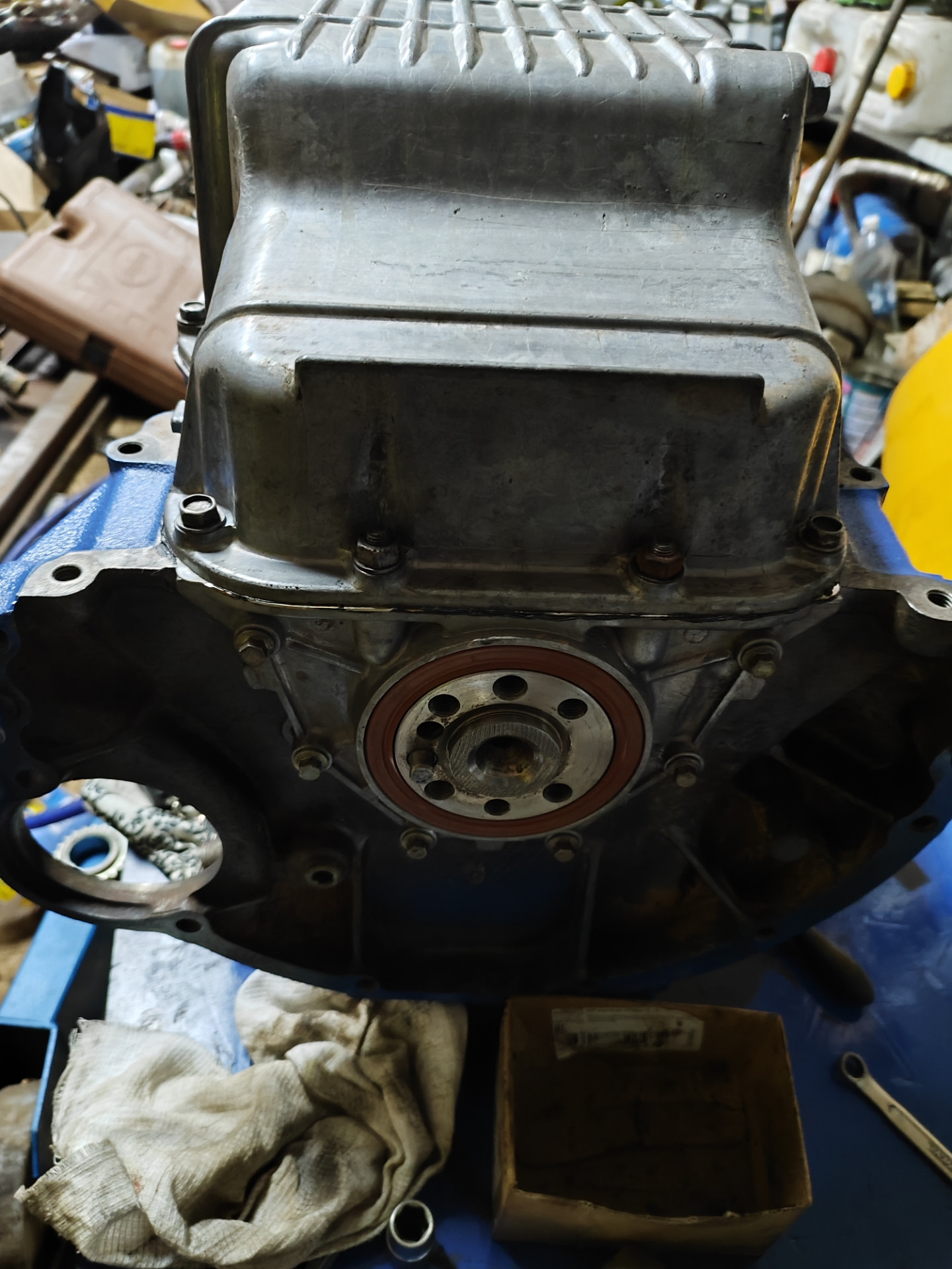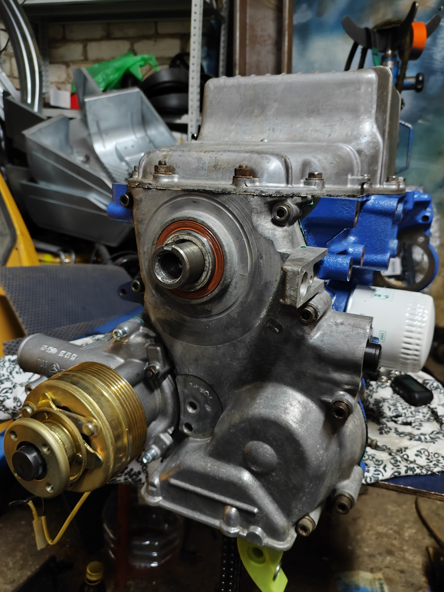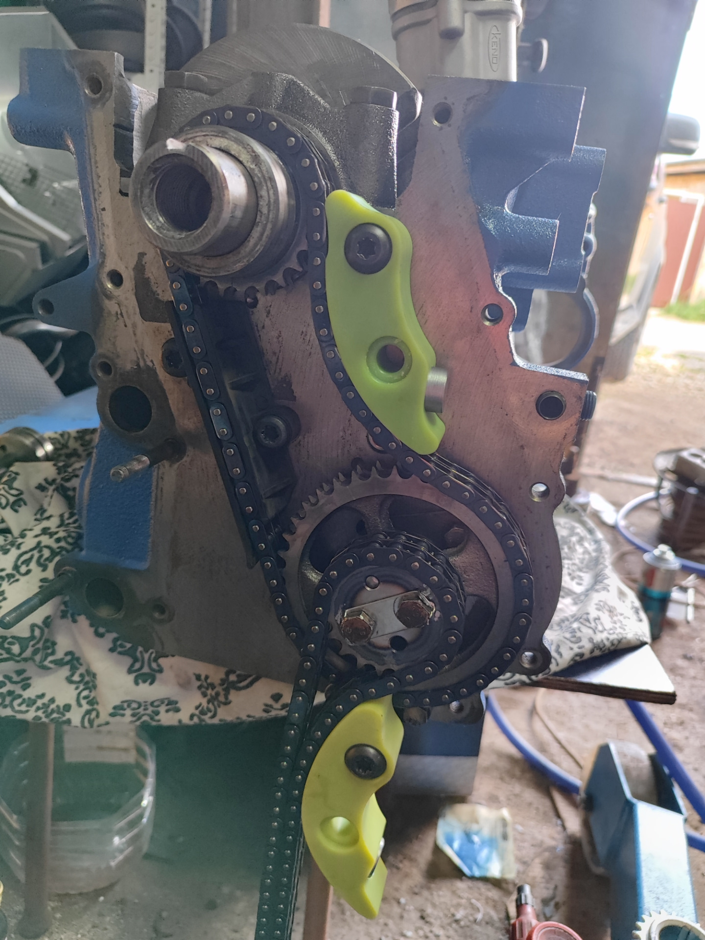 Всем салам! Не стоим на месте) заменил все 6 заглушек на блоке, по факту печальными были только пара, а заглушка за трубой промвала вообще всю кровь выпила, но я ее осилил🤣🤣🤣 Собран низ, поставил из заначки 514ый насос Кено, цепи на башмаках. Башмаки Бон типа вечные, но это не точно) скоро товарищу буду менять как раз и посмотрю что с ними стало после 80 тысяч пробега) Пром вал поставил тоже из старых запасов б.у.цельный а не на прессованный который тут же может провернуть. Все очищено и отпидорено) для сравнения фото до и после) помпу поставил оригинал т.к. всякие Кено ходят 40-60 и начинают шуметь.