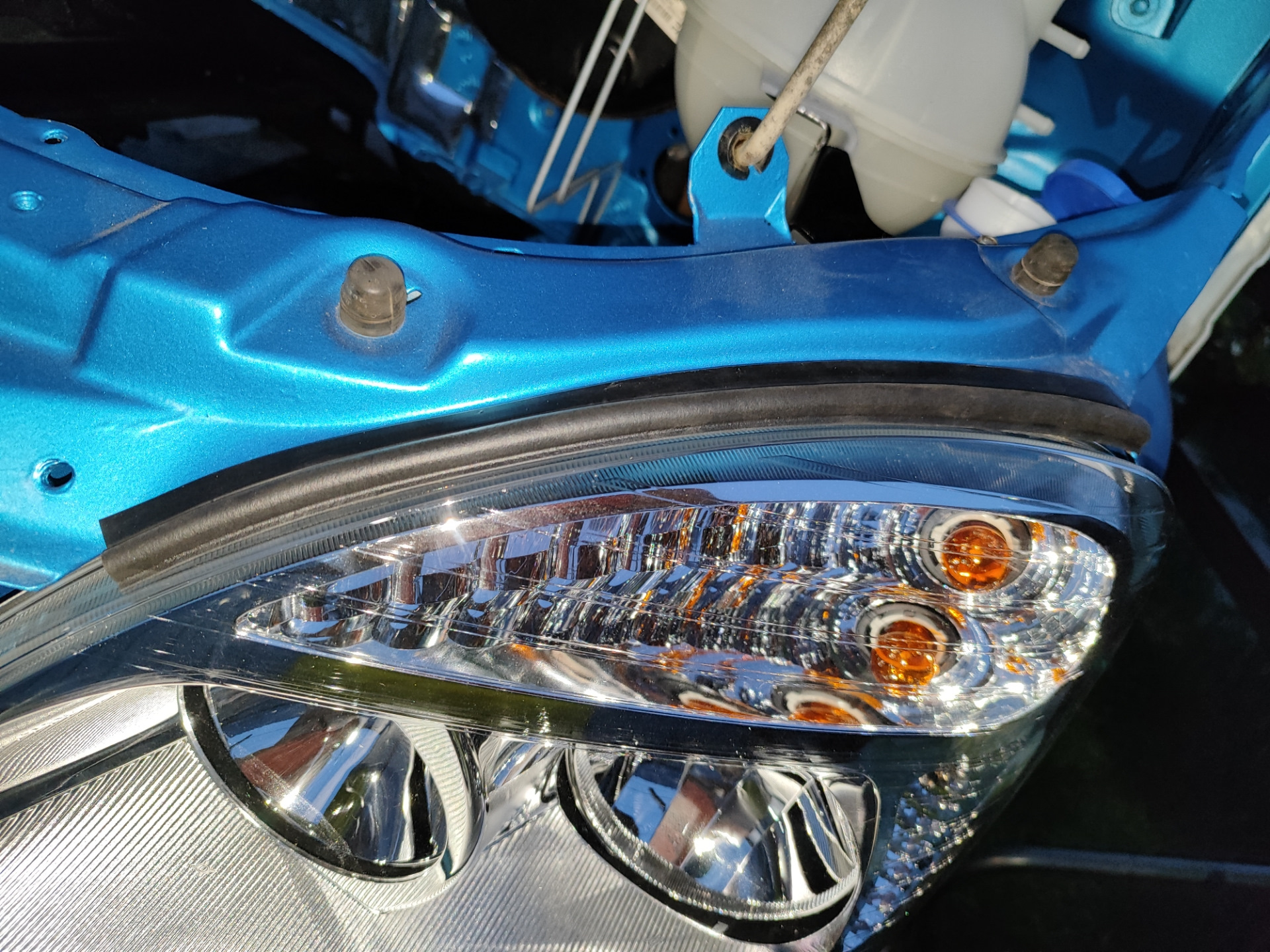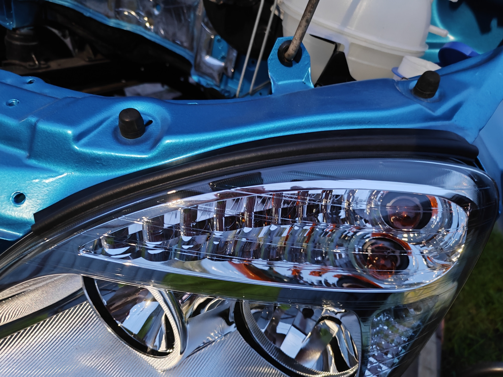 По подкапотке установлены уплотнители фар от калины) и кронштейн бочка Гур)
