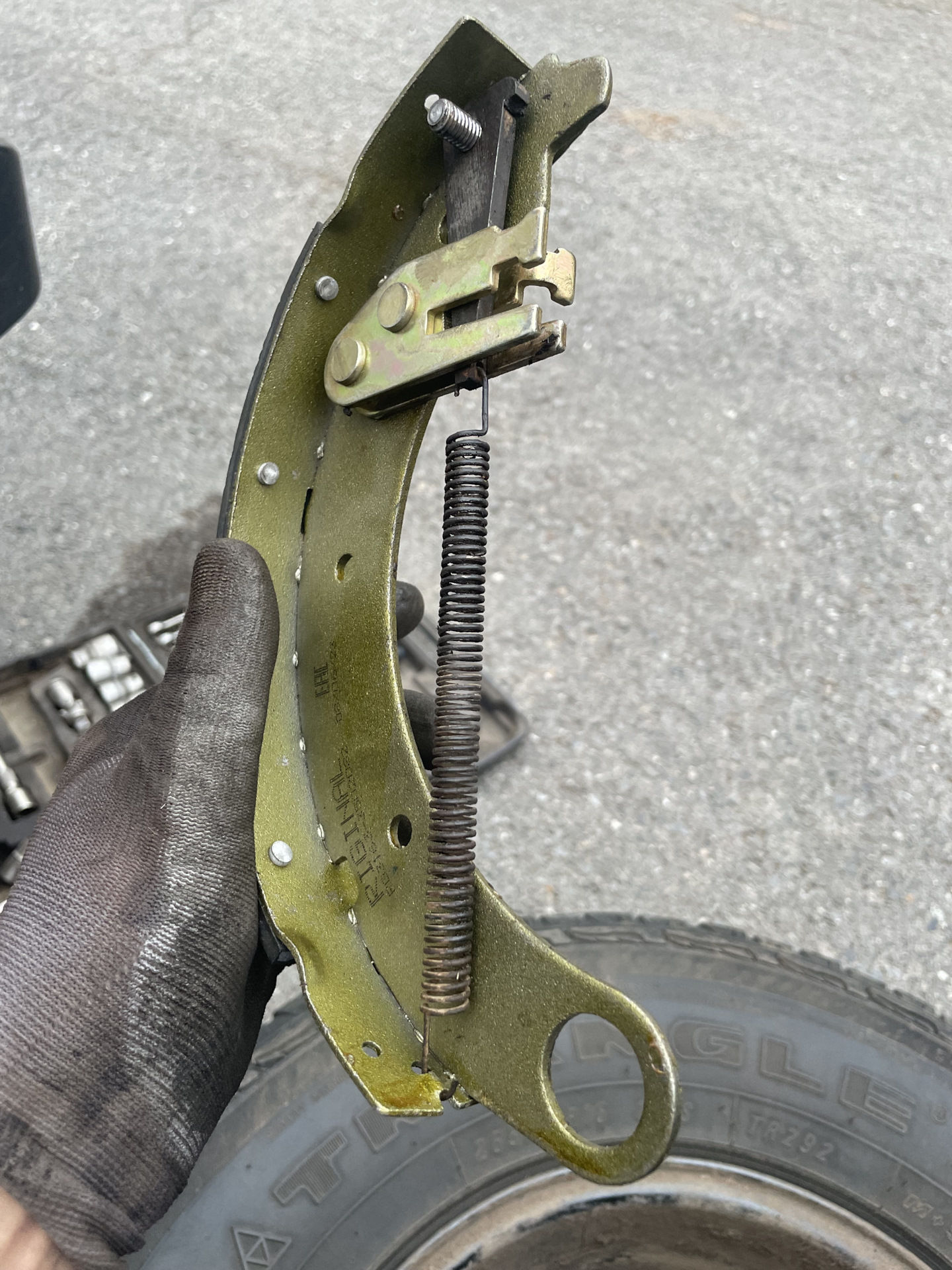 Упор ключом чувствуется. Вот просто поворачиваешь эксцентрик и он раз и уперся. В этом положении, затягиваю гайку. Отпускаешь тормоз и барабан крутится, те колодки не пережаты.