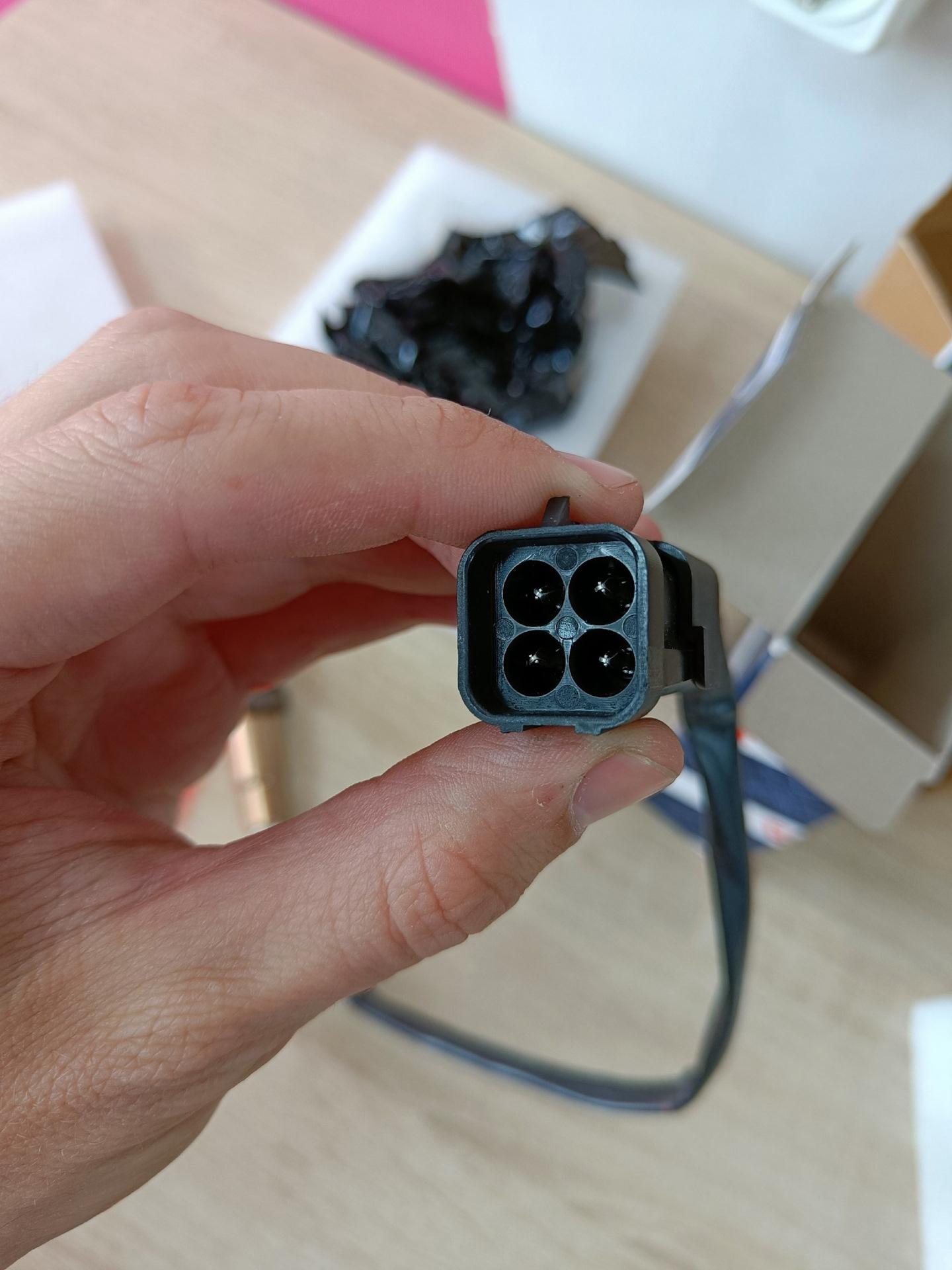 Далее купил ответную фишку этого датчика в магазине для ВАЗа. А так же отрезал фишку от одного своего неисправного датчика кислорода (GM). Покопал интернет, искал распиновку. И изготовил переходник.