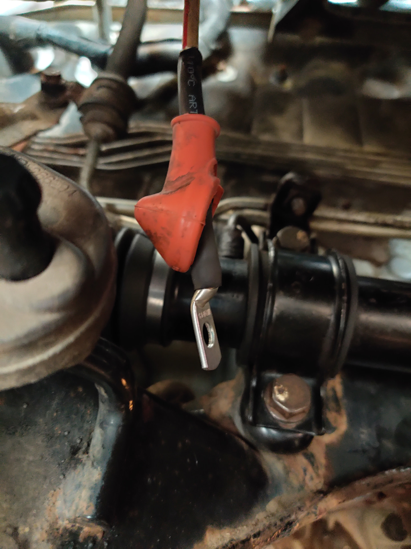 Смех смехом, а отгнившую плюсовую клемму на генератор делать придется. Которая уже держалась на соплях, и манипуляции с рейкой в районе генератора ее добили. Проблем с зарядкой не хотелось, поэтому надо было делать сразу нормально. Психанув, купил гидравлический обжимщик клемм, и решил эту проблему за 5 минут, обжав наконечник и усадив в клеевую термоусадку. Генератор на Спейсе тоже расположен не удачно, вода из-под колеса постоянно орошает его, даже при наличии всех пыльников и защиты двигателя.