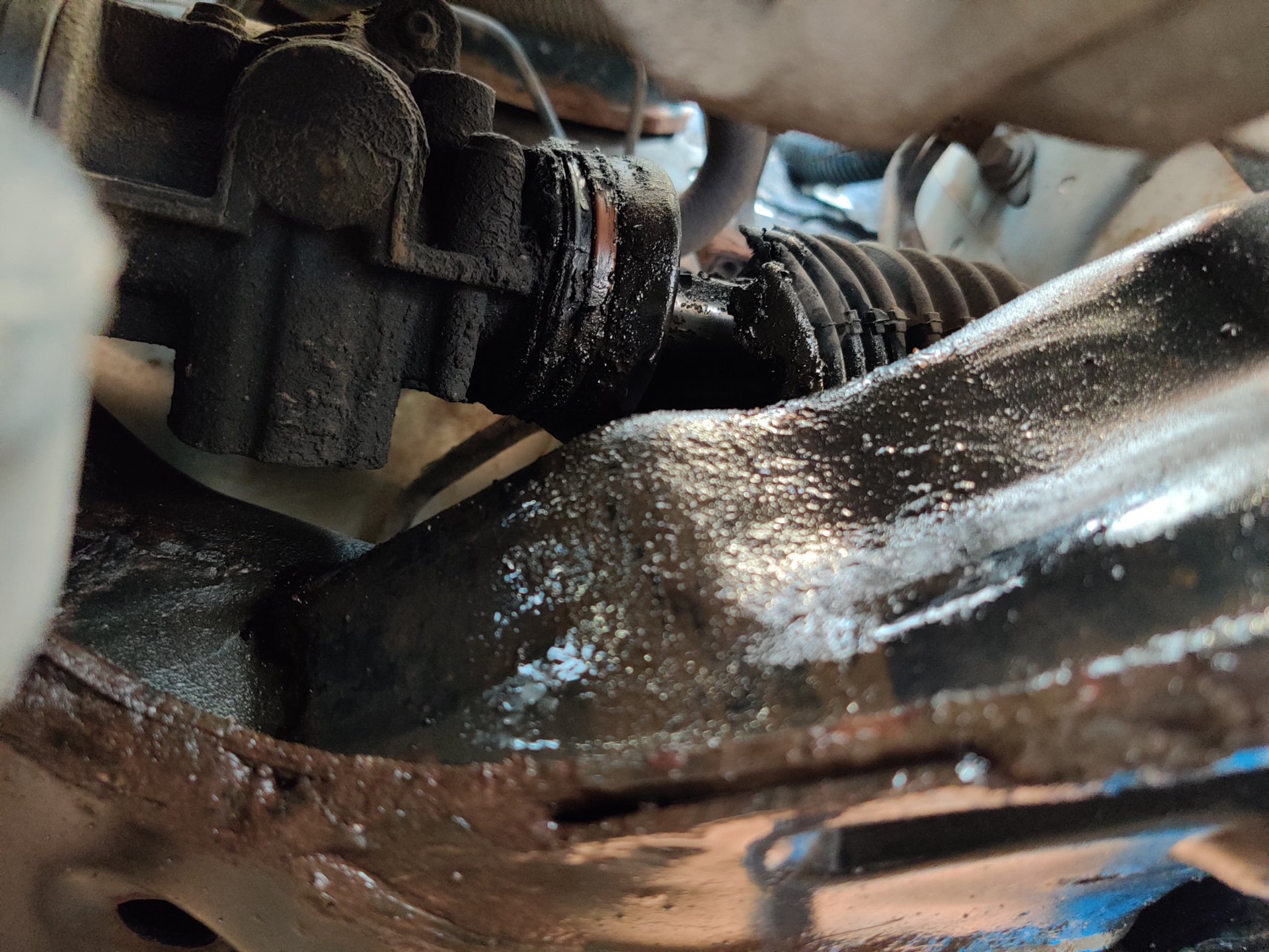 В ходе разбора, был обнаружен рваный пыльник по левой стороне, логично предположить, что он и послужил причиной потекшей рейки. Как давно он порвался, на этот вопрос никто уже не ответит, но еще весной, несколько месяцев назад, меняя масло, я бы точно увидел зачатки проблемы, запотевший пыльник, подтеки масла и т.д. В любом случае, надеюсь, что не ездил так с зимы. В любом случае – уже все равно. Грязь сделала свое дело, уничтожив сальники рейки, что и вызвало такую течь жидкости ГУР. А насколько сильно, и поврежден ли вал – предстоит узнать, сняв все лишнее и добравшись до рейки.