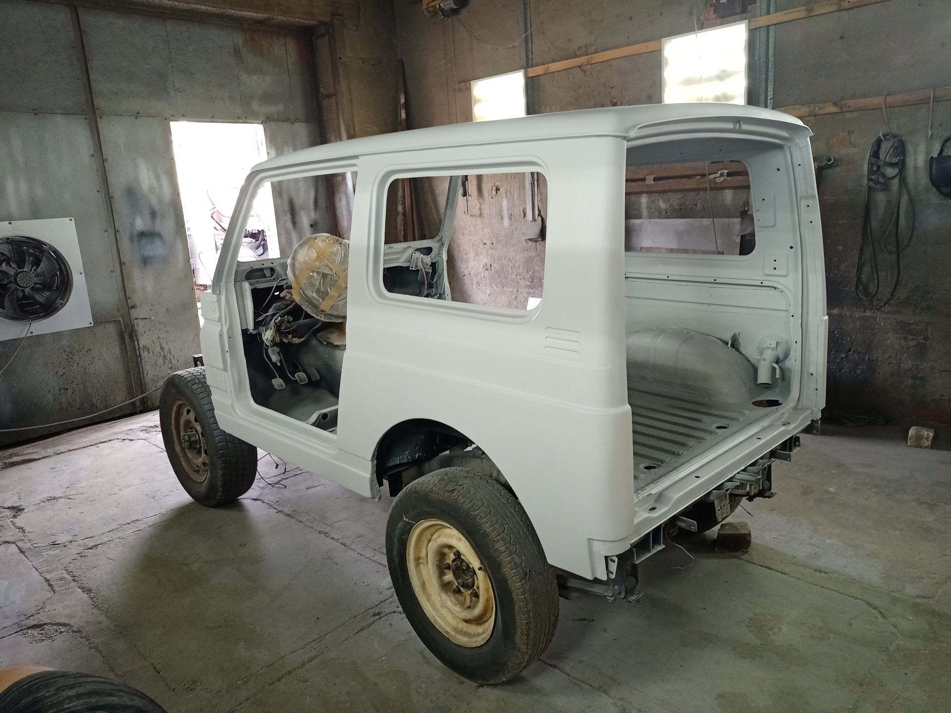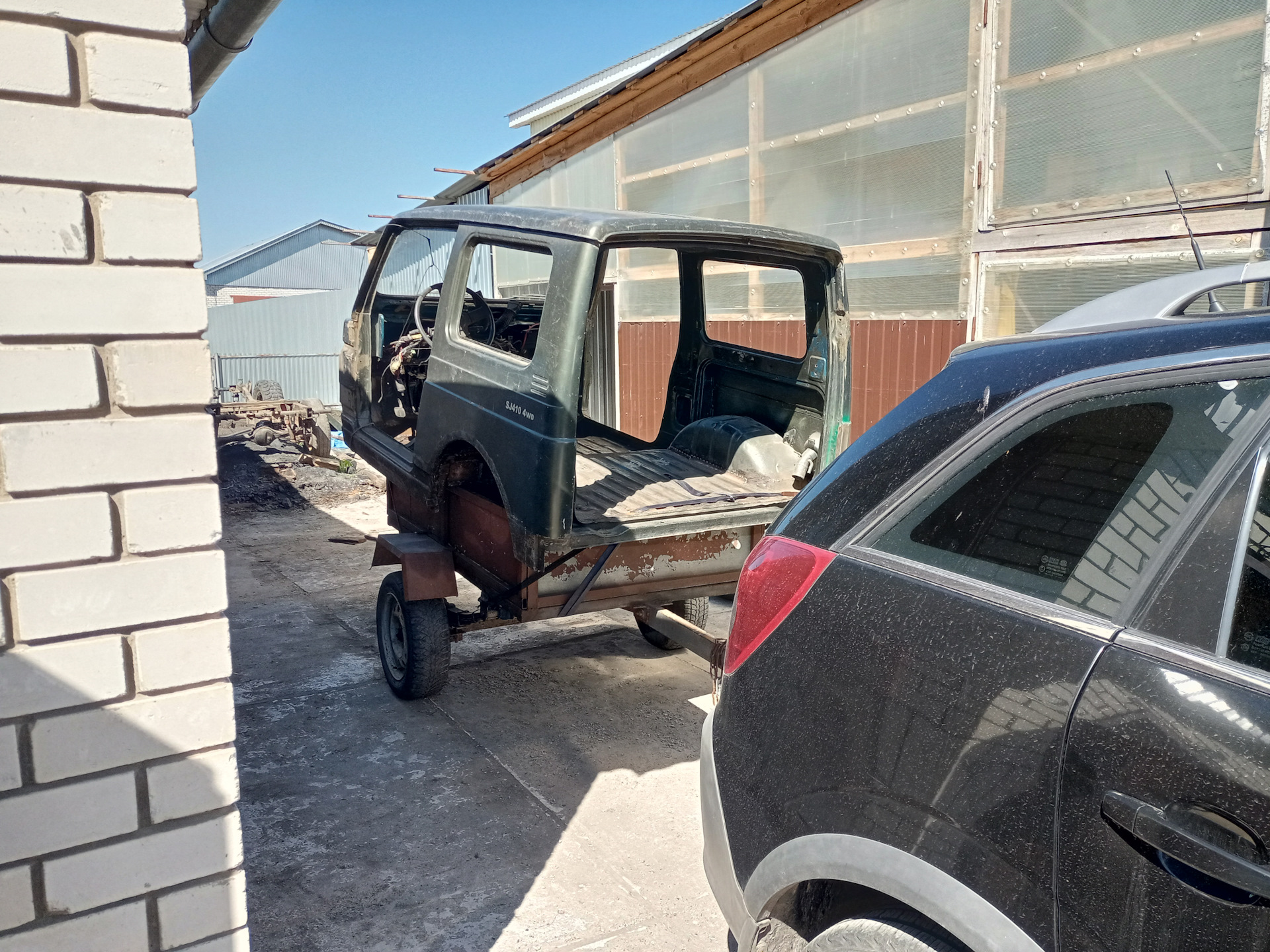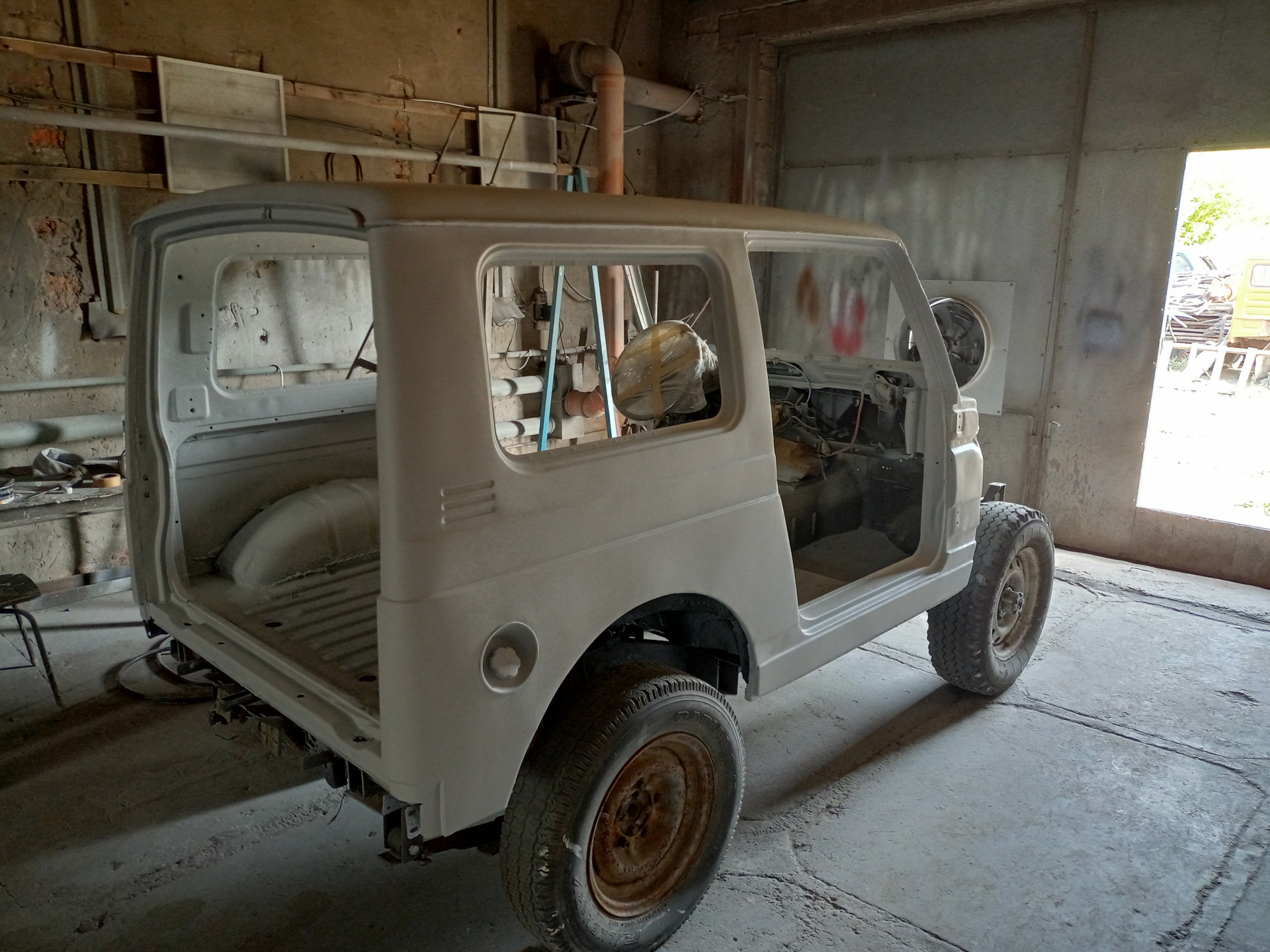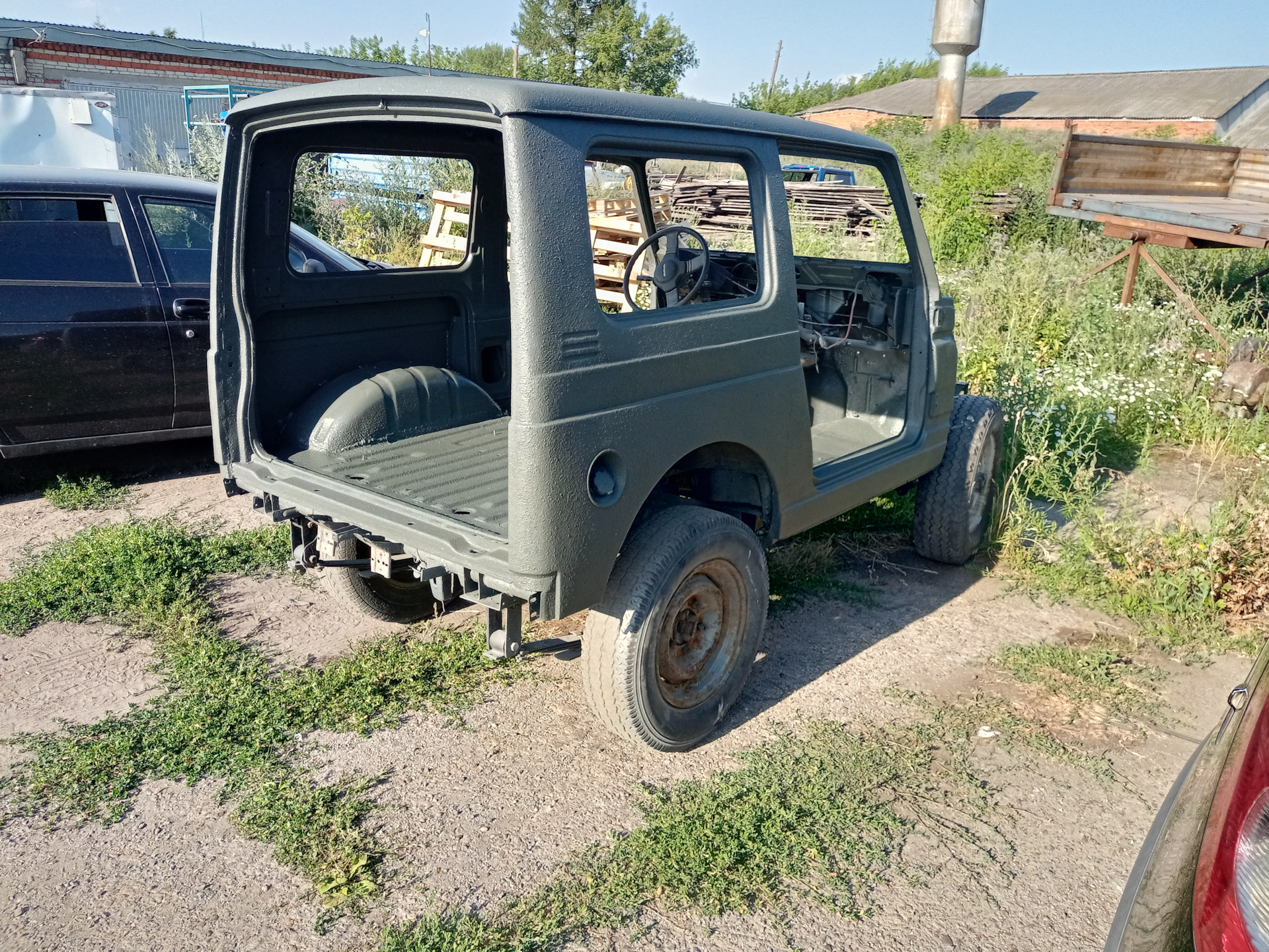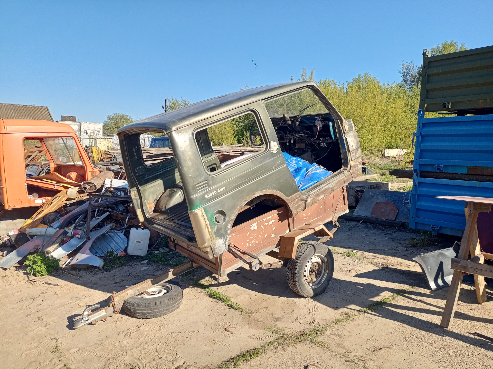 По уму там всю правую сторону менять надо было, ушатана была когда-то давно. Ну и двери крылья капот на очереди. Особенно правая дверь и крыло все в шпатле. В этом году точно не поедет. Место для кузова приготовил, постоит зиму там. Раму надо будет отмыть и обработать. По сравнению с кузовом просто отлично сохранилась. Только места креплений подушек кузова переварили на плоские шайбы под УАЗовские подухи.