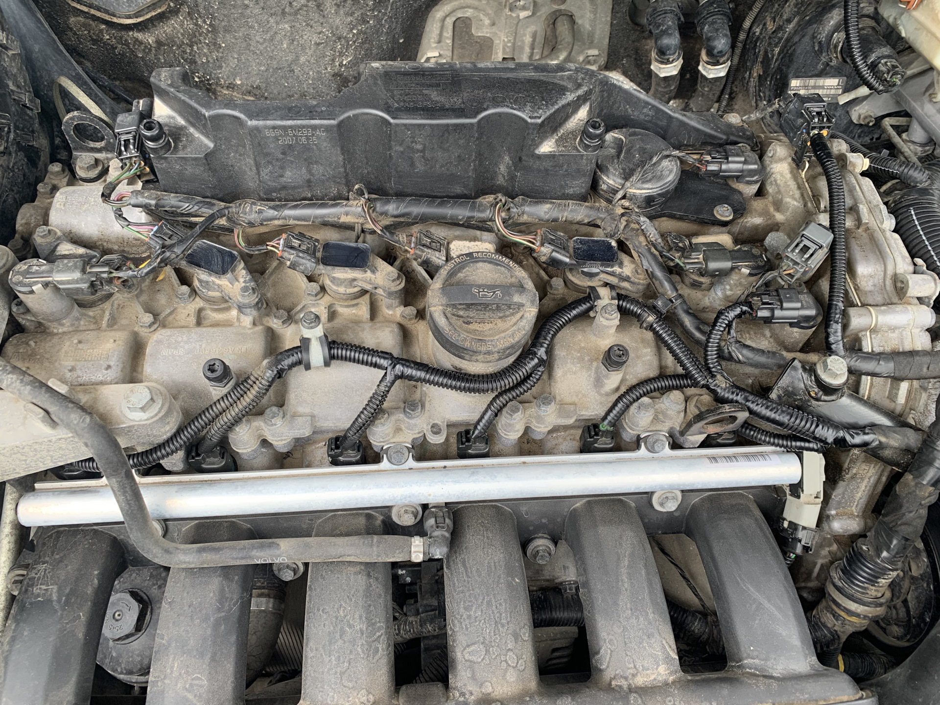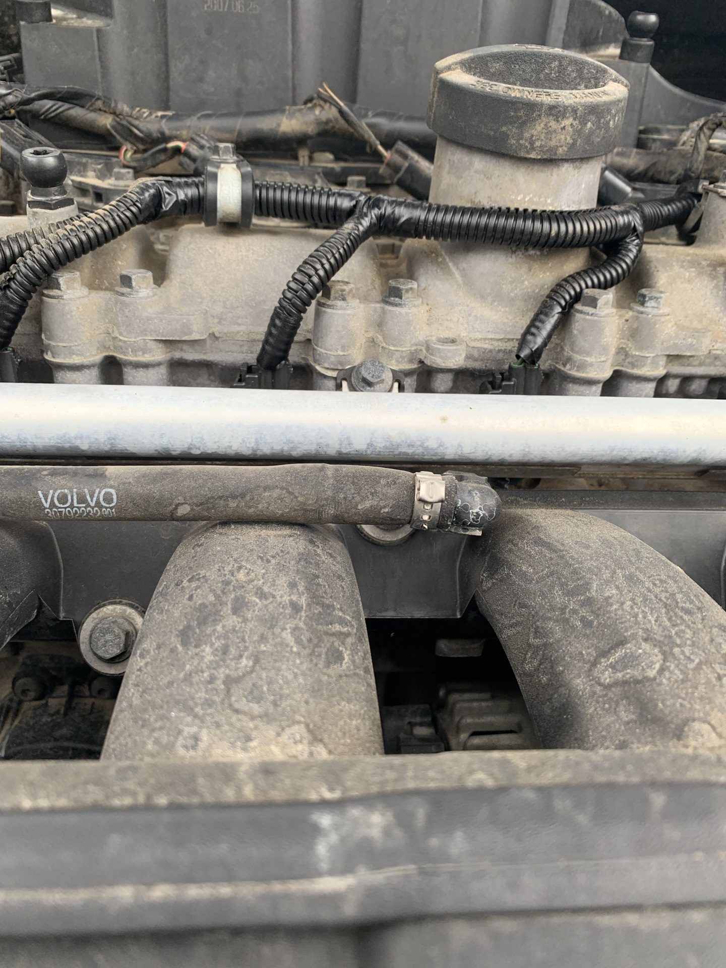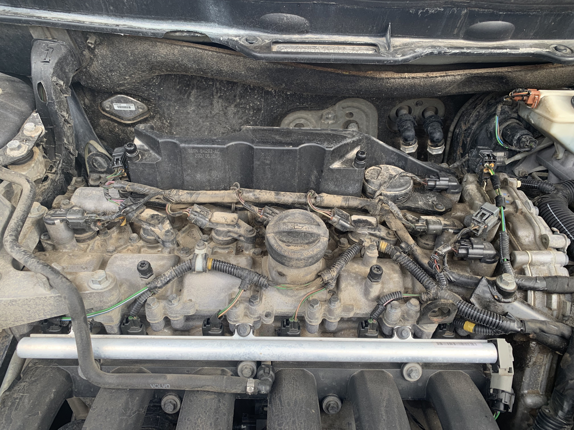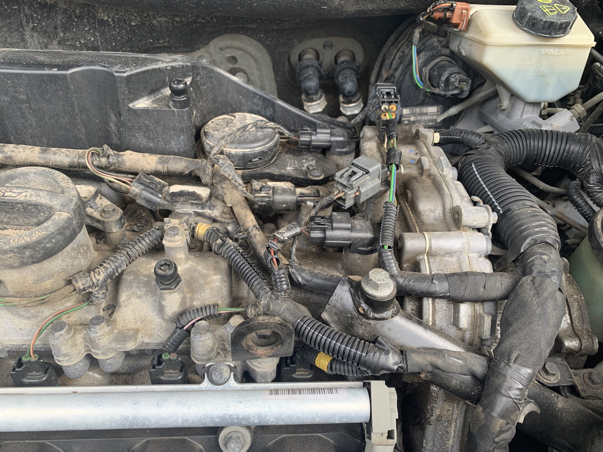 Когда мыл мотор обнаружил, что гофры проводки на двигателе рассыпаются от прикосновения. Только те, что прямо на двигателе уложены. К одной форсунке провод лежал уже прямо на горловине маслозаливной и начал прикипать.