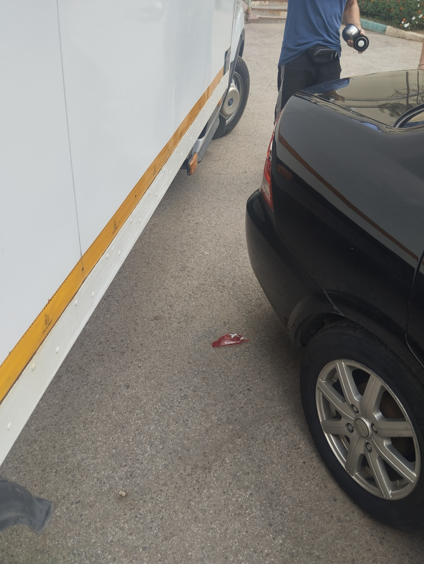 Выхожу я значит из дома, собирался ехать по делам и стоит фургон коряво, думаю че это он стоит так, а потом смотрю осколки фонаря на асфальте, думаю ну пзц.