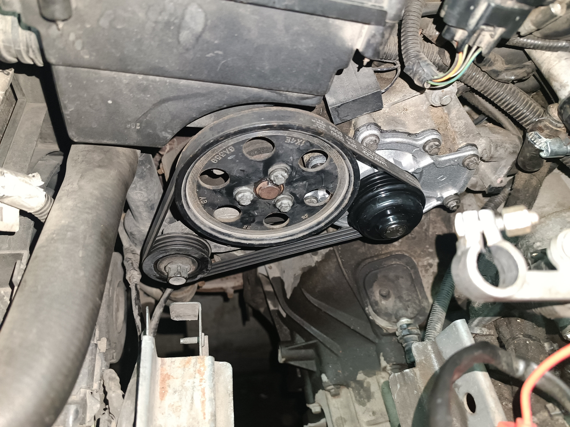 Дальше помпа. Отжал рукой нятяжитель и снял ремень. Ремень в порядке.